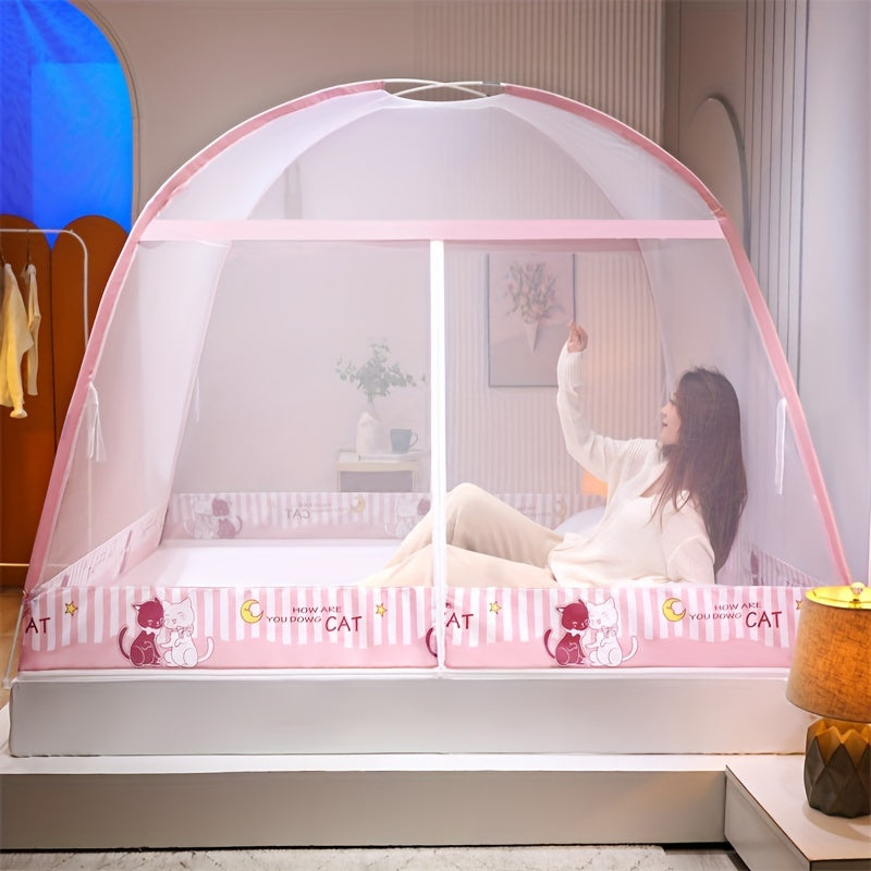 Yopiladigan Mo'g'ul Yurtidan Chivinlar uchun to'siq, 360° himoya, katta joy, multfilm dizayni