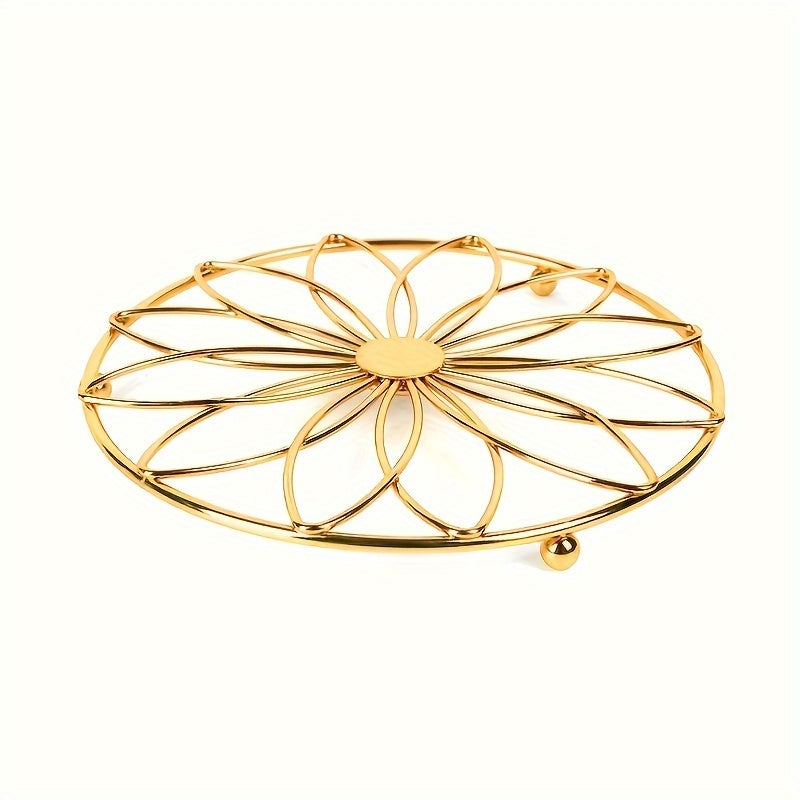 Dekorativ zanglamaydigan po'latdan yasalgan trivet bo'sh gul dizayni bilan, issiqlikka chidamli, sirpanmaydigan oshxona aksessuari