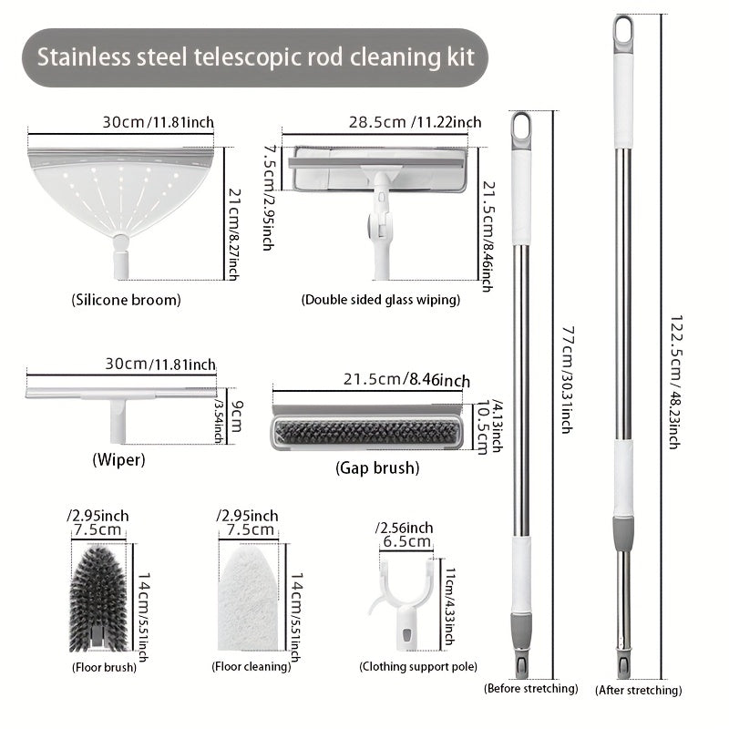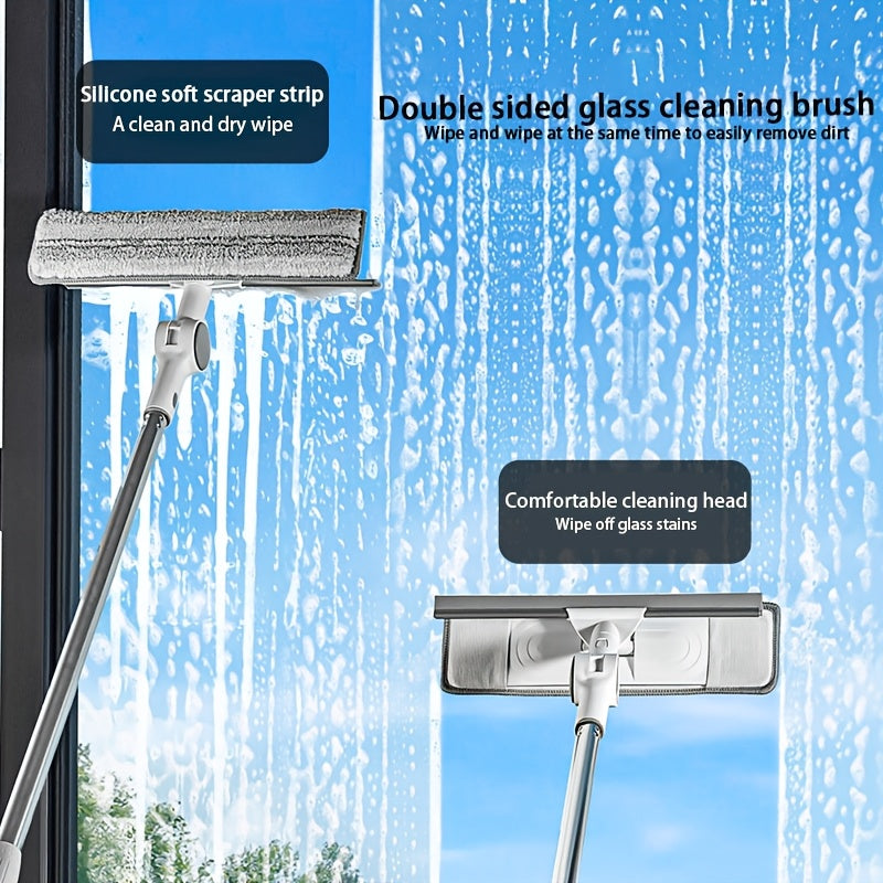 Ko'p funktsiyali derazalarni tozalash asbobi, 7 ta cho'tka boshli va shisha chizish uchun scraper bilan