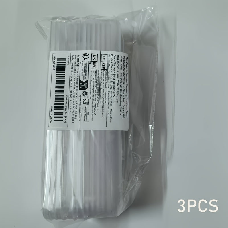 Uchta polipropilen (PP) oziq-ovqat saqlash idishlari, sabzavotlar, makaron va tuxumlarni muzlatgichda tartibga solish uchun mukammal. Ushbu qayta ishlatiladigan qutilar oshxonada oziq-ovqatni xavfsiz saqlash uchun zarur.