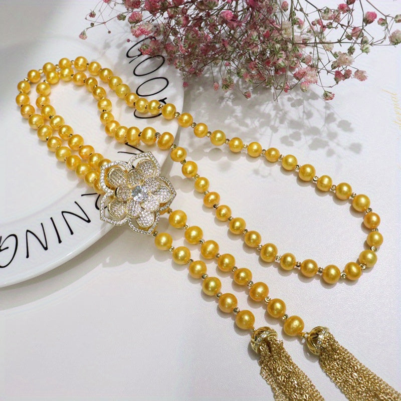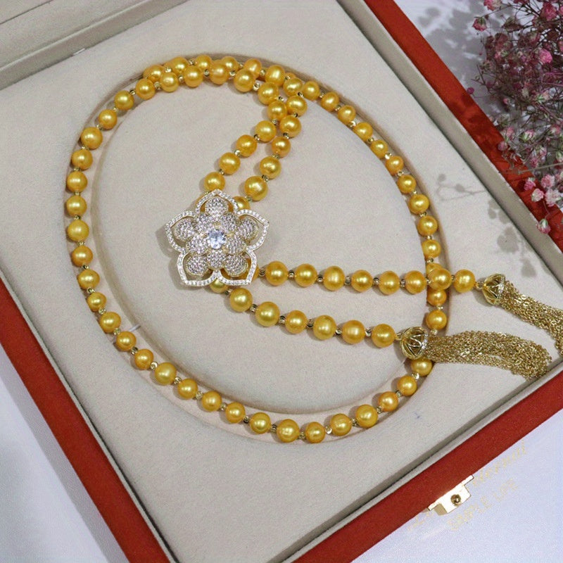 "Vaqt o‘tkazmaydigan Shirin Suv Marvaridli Sviter Bilaguzuk - 8-9mm, Vintage va Nafis Dizayn, Oddiy Kiyimlar va Maxsus Tadbirlar uchun mukammal, Sovg‘a Qutisi bilan birga"