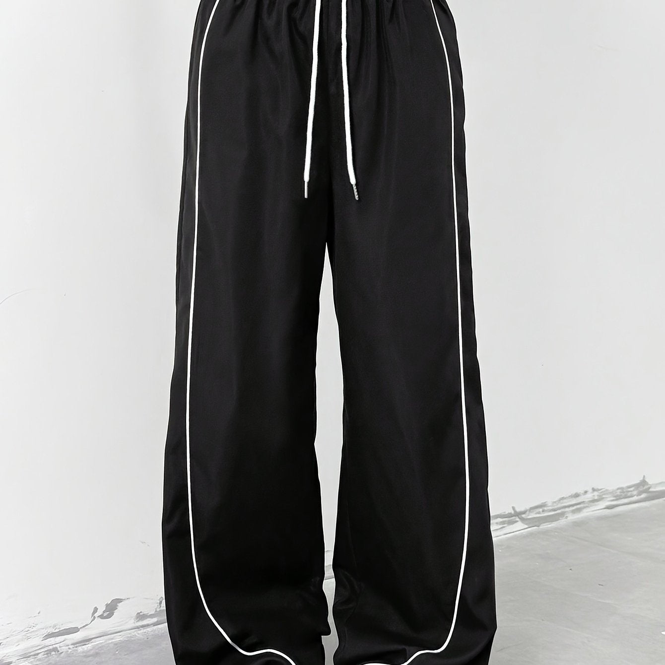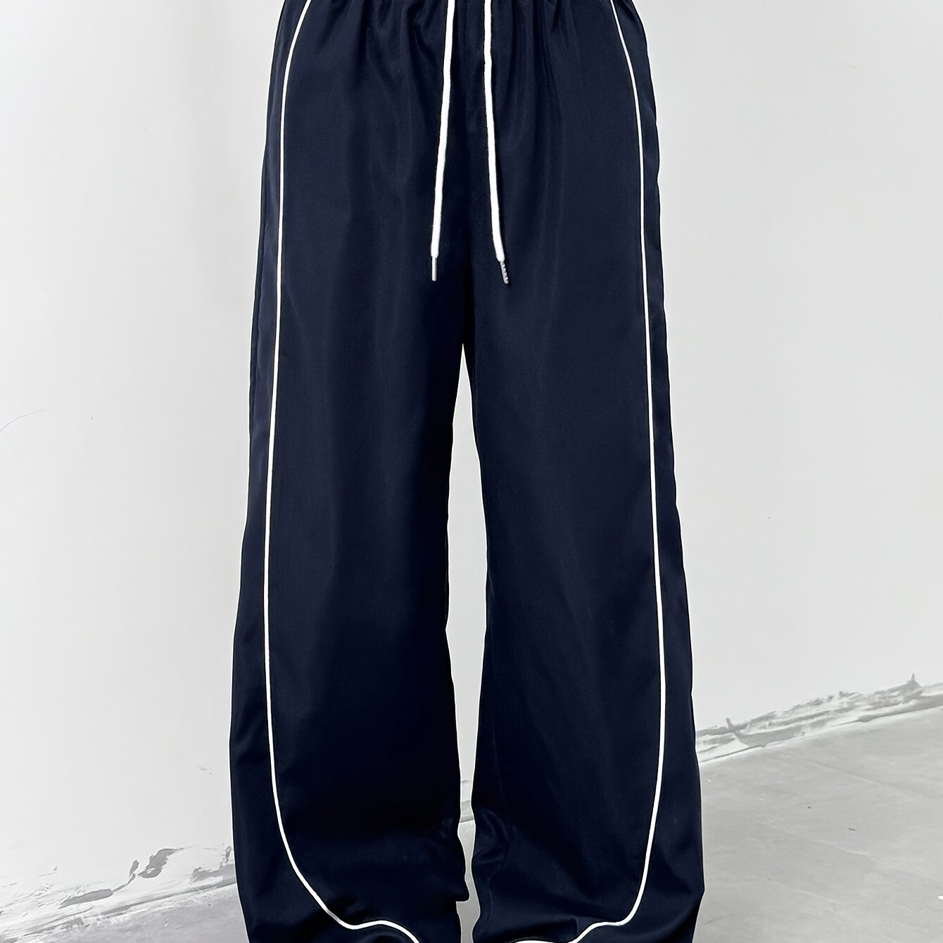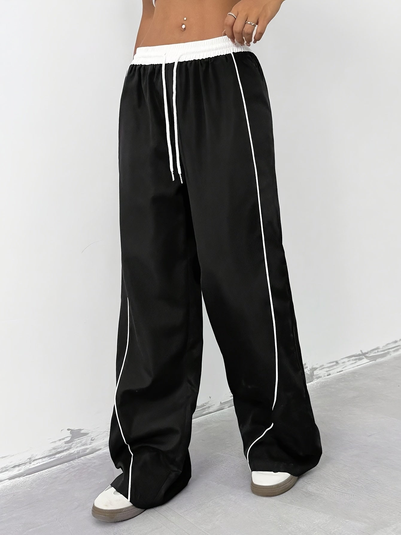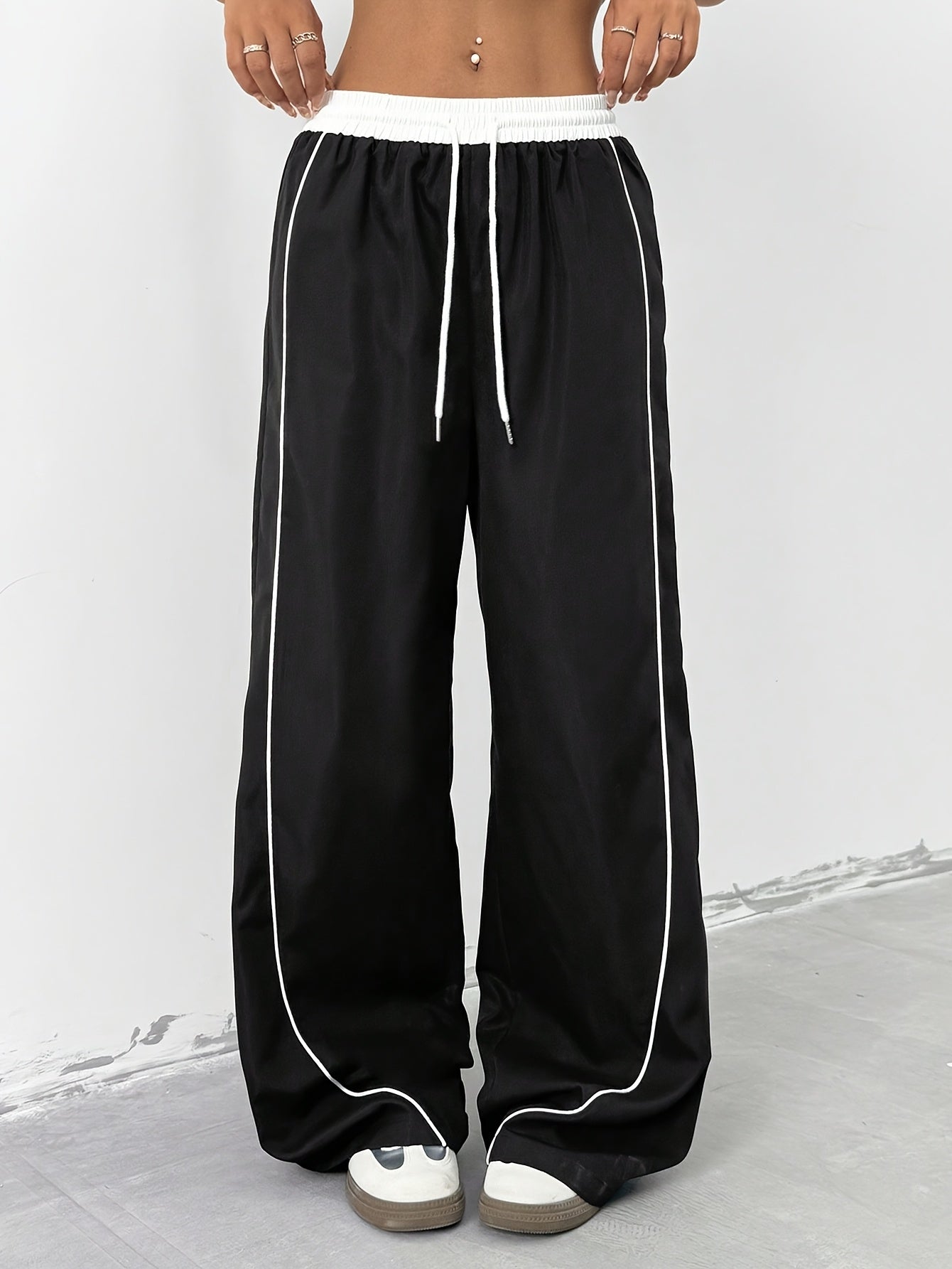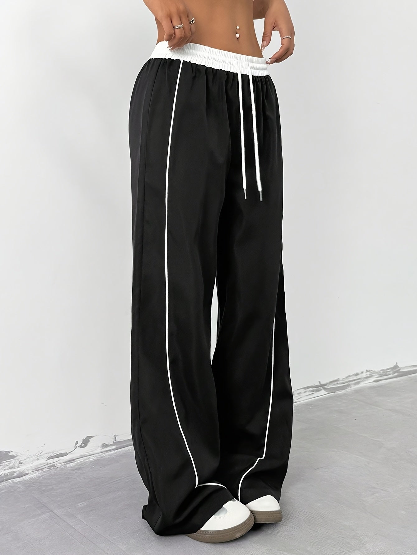Tom Directional Ayollar uchun Rangli Blokli Chiziqli Bel Keng Oyoq Shimlar