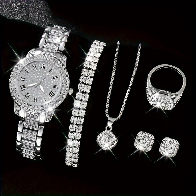 6 ta ayollar uchun quarts soatlari, taqinchoq va bilaguzuk bilan sovgʻa to'plami