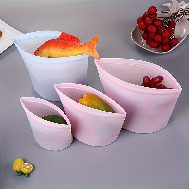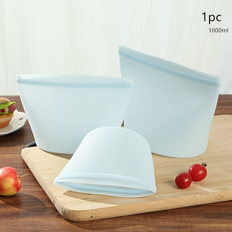 Silicone oziq-ovqat saqlash sumkasi, qayta ishlatiladigan, o'z-o'zini yopadigan, muzlatgichda va sovutgichda xavfsiz, meva, sabzavot, sut uchun