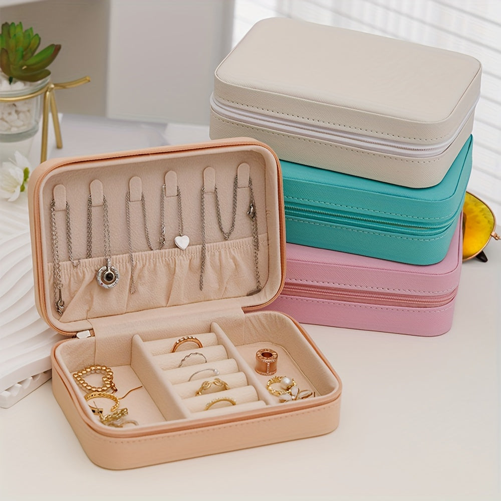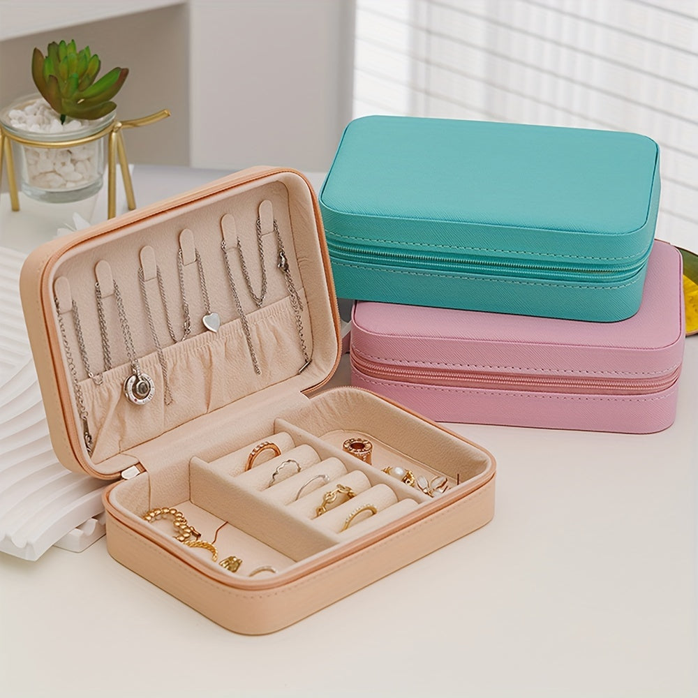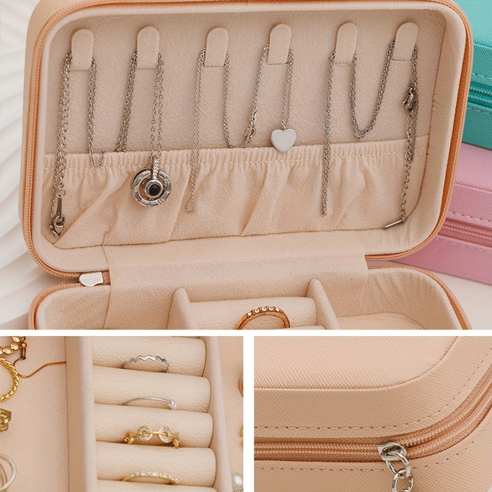 Kalit bilan qulflanadigan sun'iy charmli zargarlik qutisi, qulay saqlash joyi uchun marjon, uzuk va taqinchoqlar