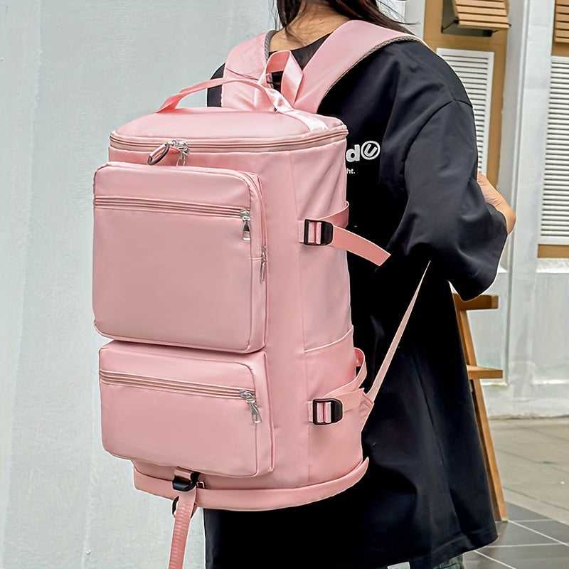 Sayohat ruksak, olib tashlanadigan yelka tasmalari bilan - fitnes, suzish uchun mukammal, suv o'tkazmaydigan, mustahkam, pushti rangda zamonaviy.