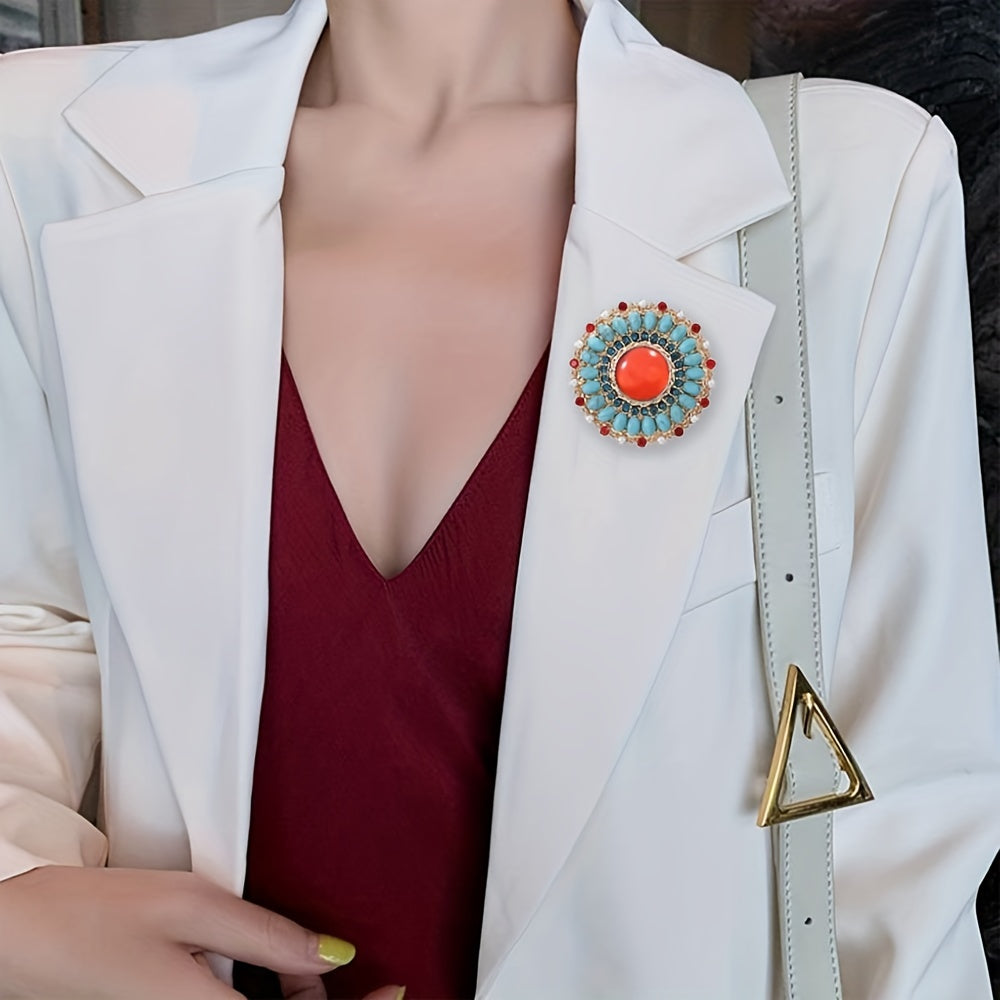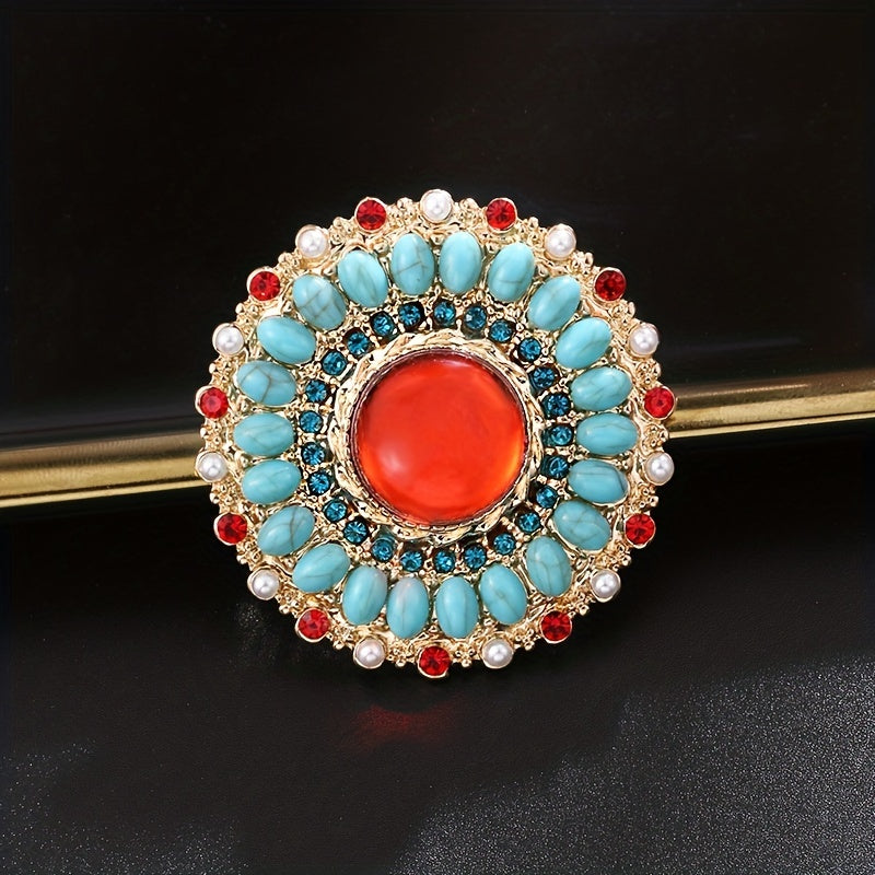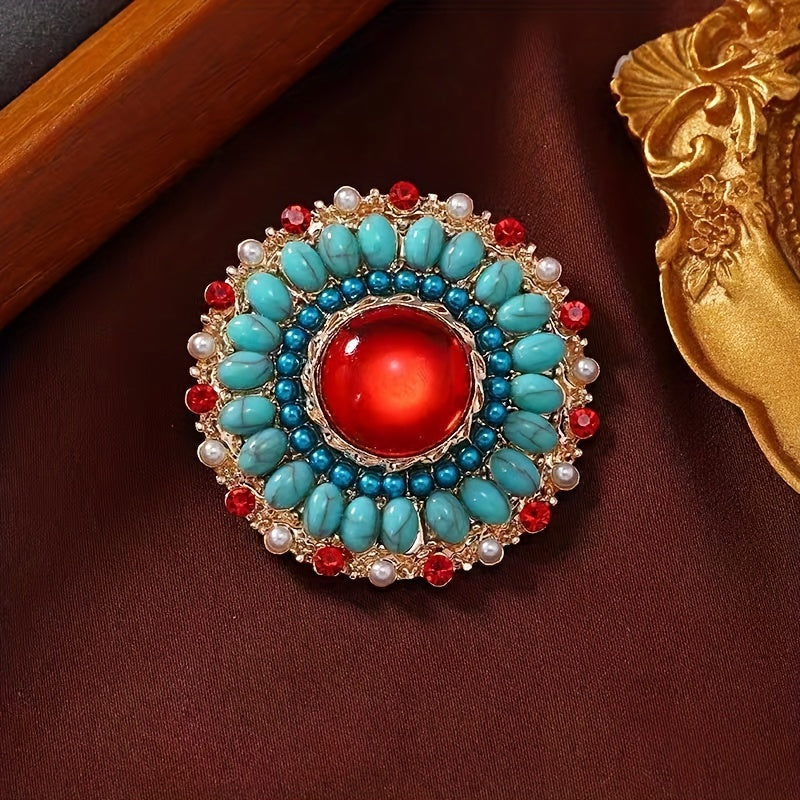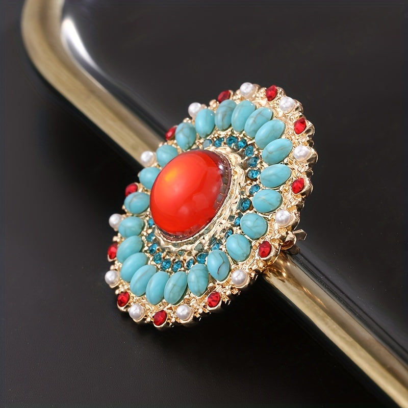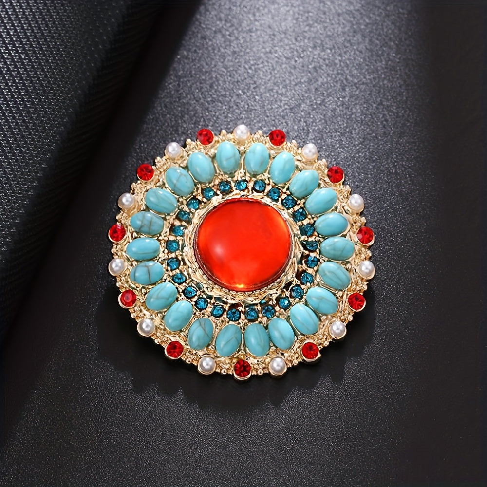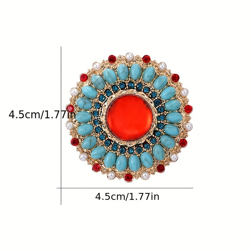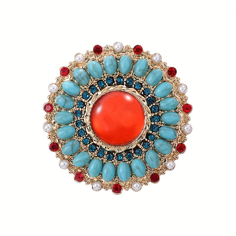 Turkuaz Kristal Boho Uslubidagi Brosh - Kiyim Aksessuari