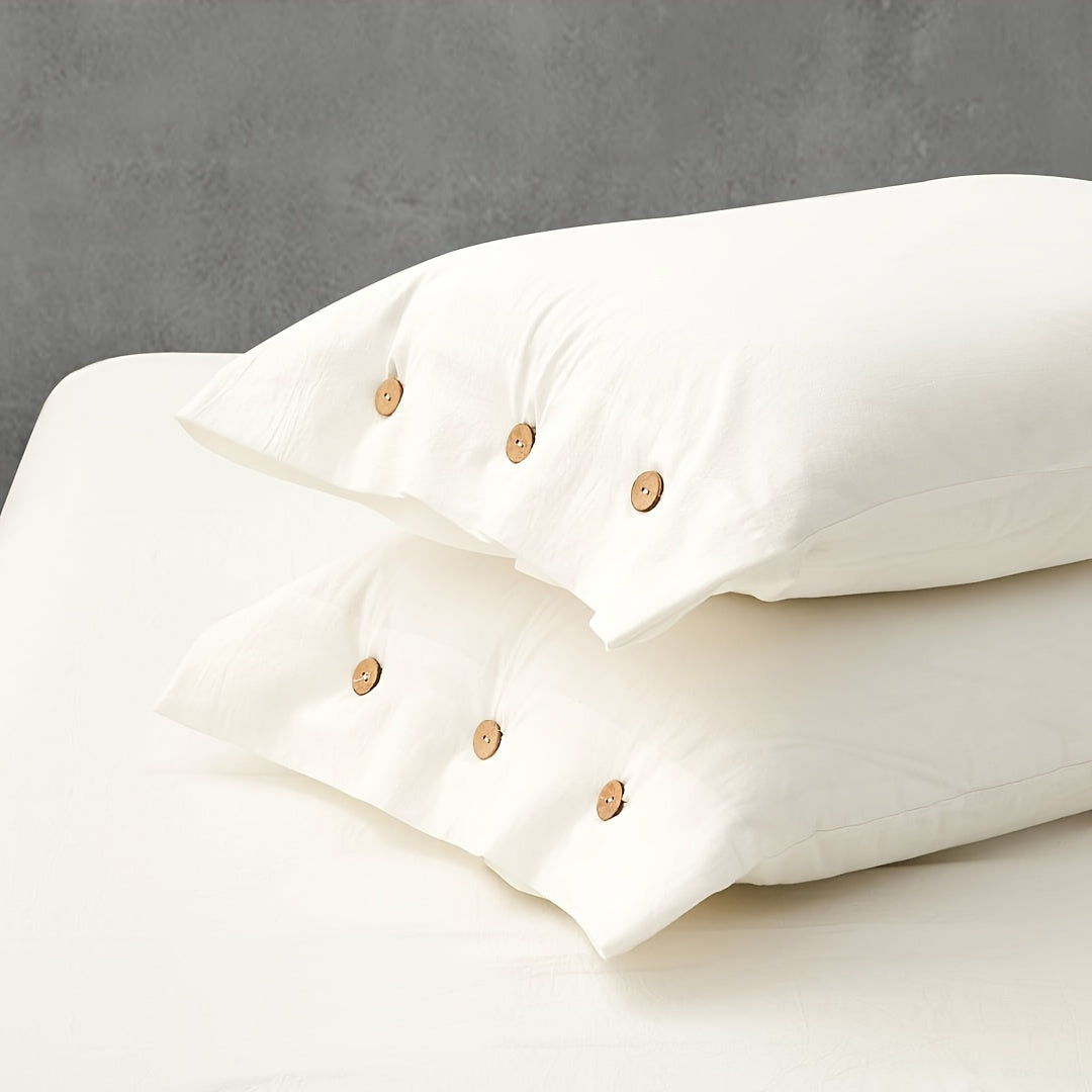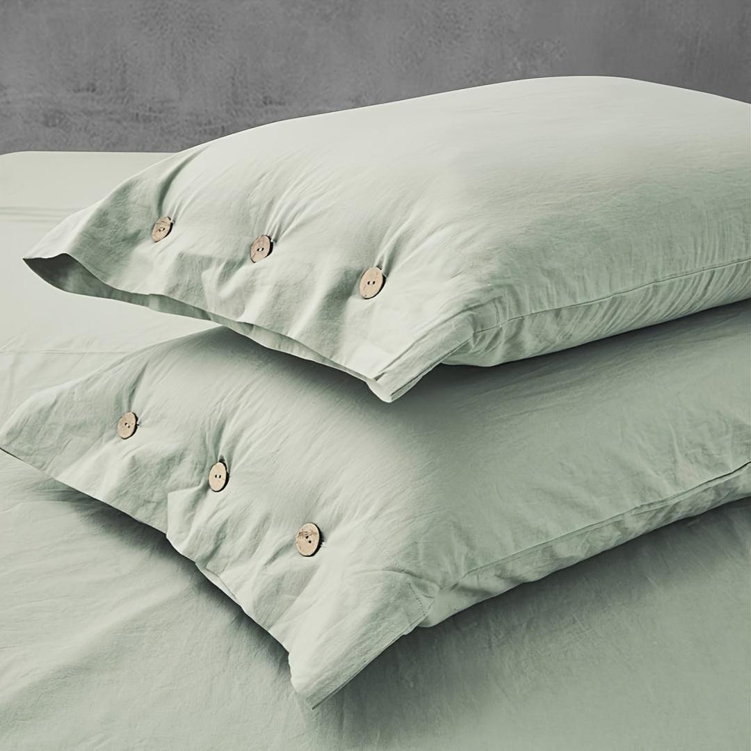 Paxta yostiq qopqog'i to'plami, oq va yashil, tugma yopilishi, yumshoq suvda yuvilgan, 32 ta