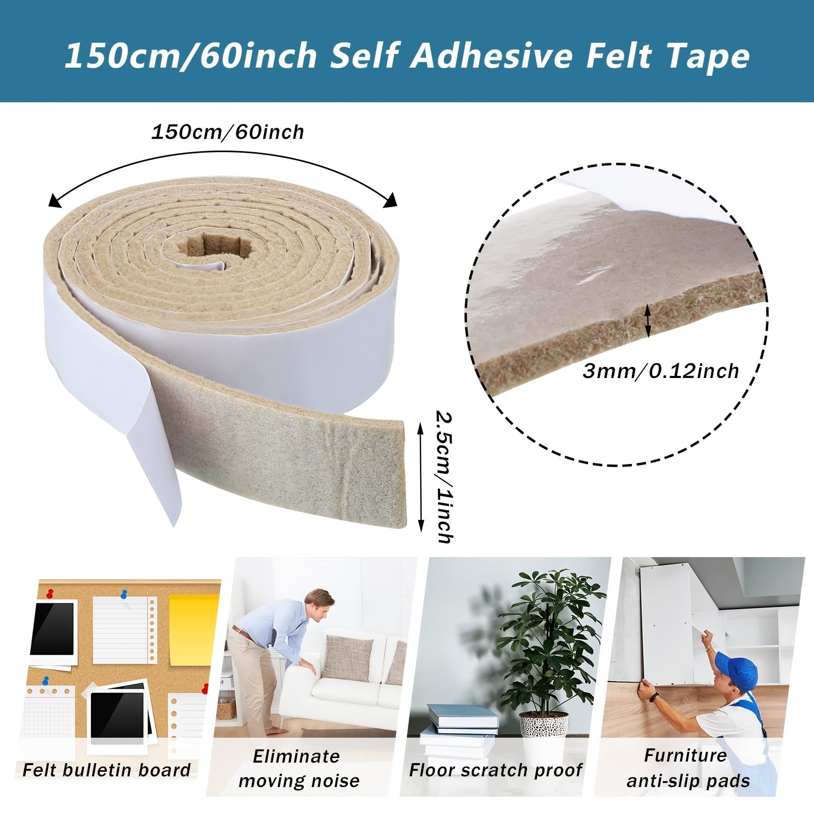 Bej O'z-o'zidan yopishadigan filьt lenta 2 ta rulon, sirg'almas, mebel, polni himoya qilish