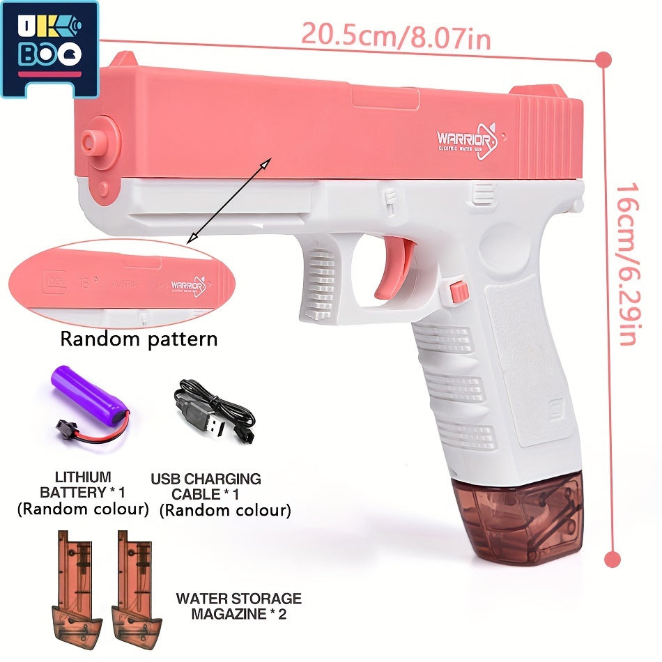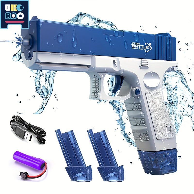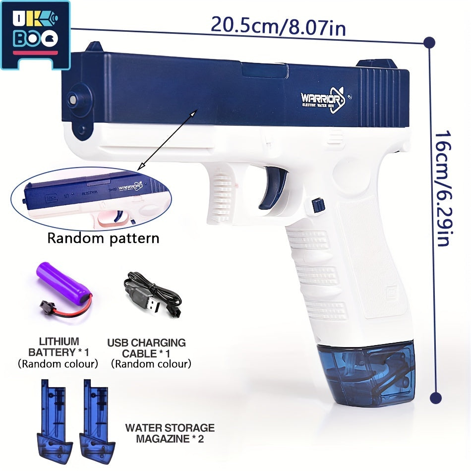UKBOO elektr suv quroli ko'k va oq rangda, 500mAh lityum batareya bilan qayta zaryadlanadigan. Yozgi basseyn va plyaj partiyalari, shuningdek, kattalar yig'ilishlari uchun mukammal. Qiziqarli va yoqimli suv quroli o'yinchoq.