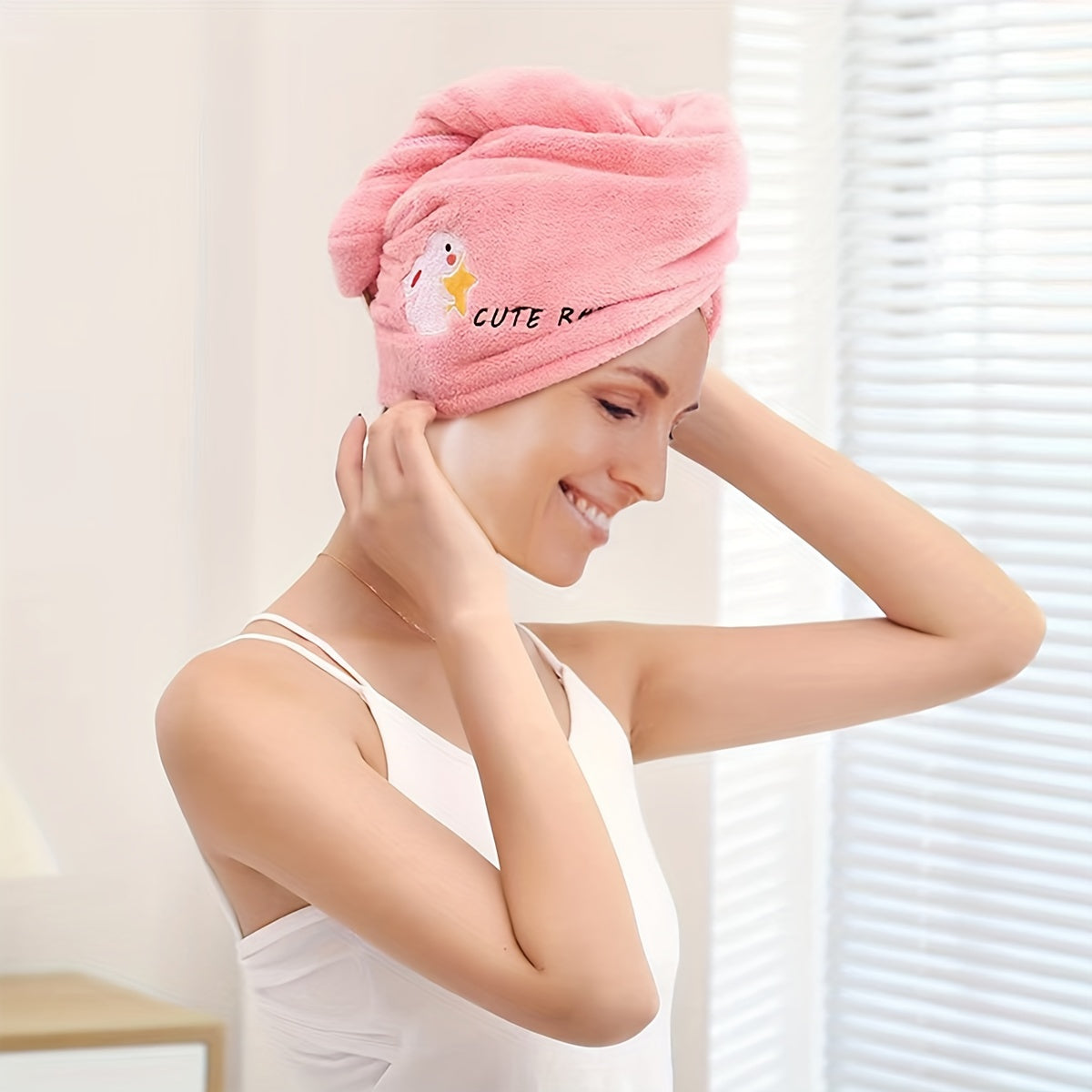 Ultra-absorbent mikroto'qima soch to'plami qiziqarli multfilm dizaynlarida - tez quriydigan, engil dush qopqog'i ayollar uchun. Moviy, binafsha, sariq, pushti ranglarda mavjud. Yumshoq va qulay polyester aralashmasi.