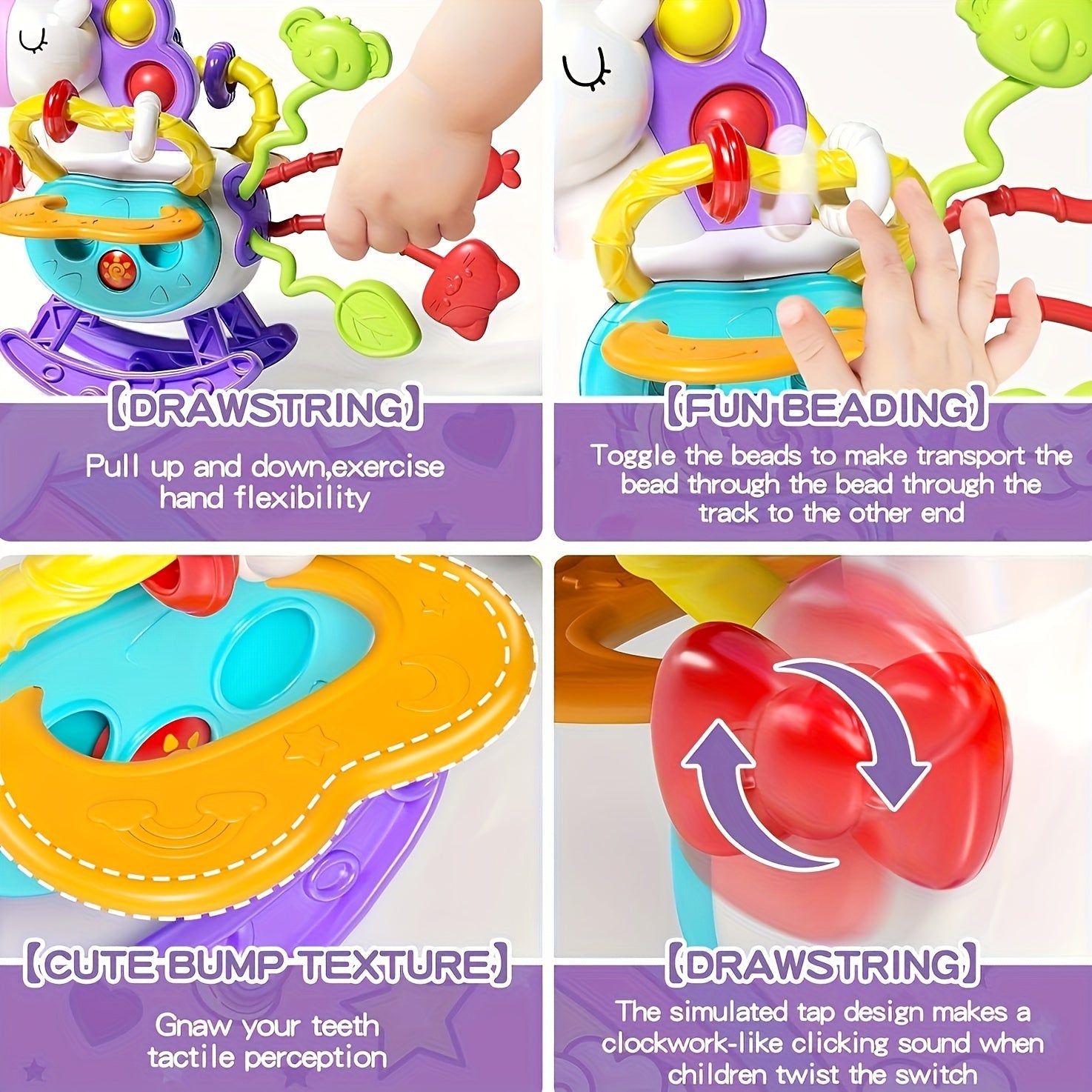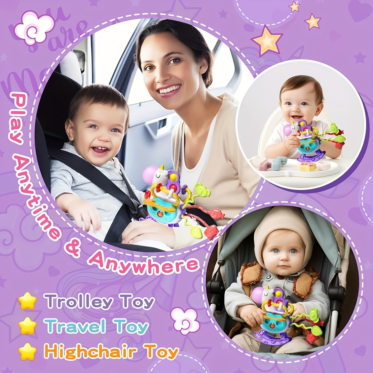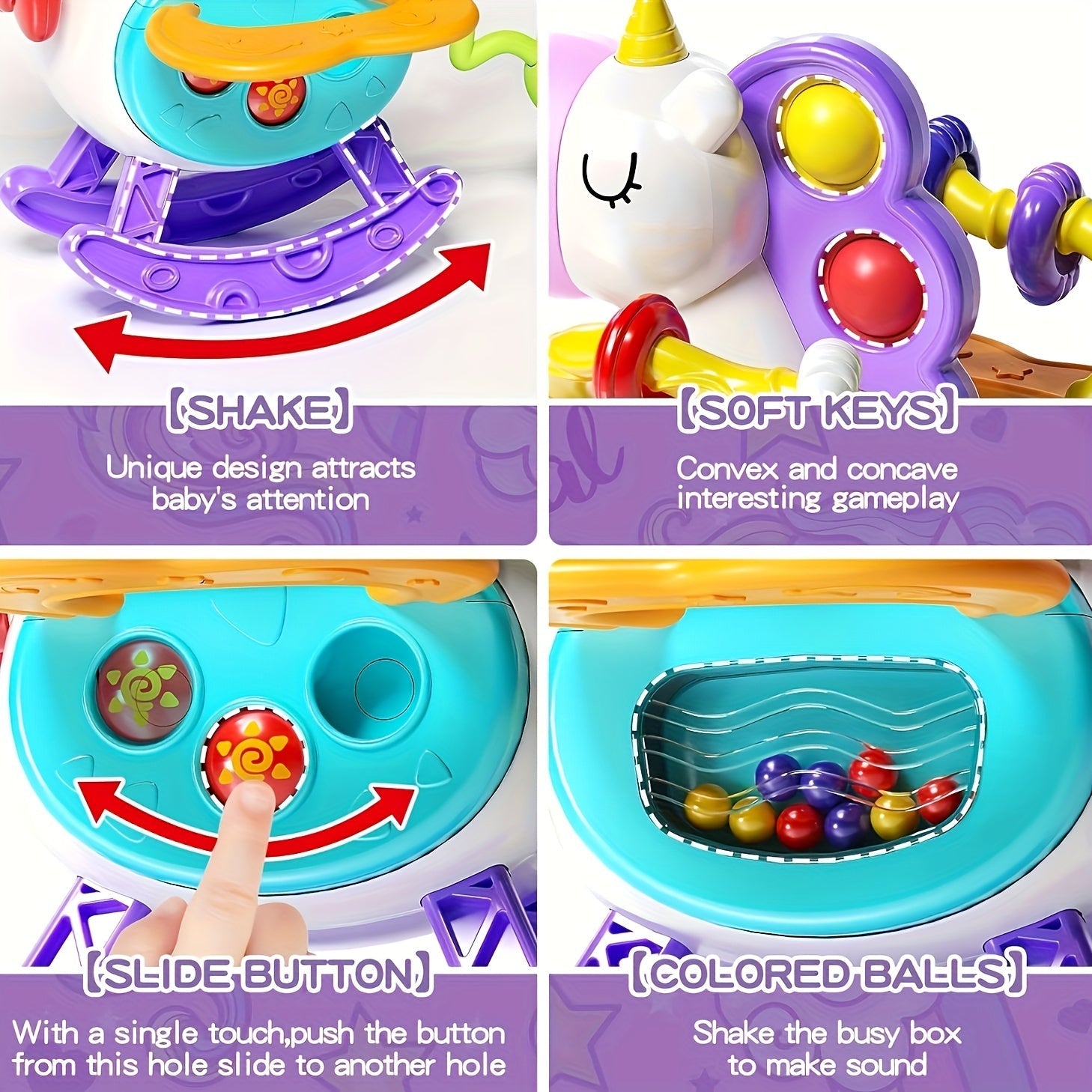 Unicorn mavzusidagi sezgi o'yinchoqlari, bolalar uchun mo'ljallangan, ta'limiy o'yin va tish chiqishida yordam berish uchun silikon tortish ipi faoliyatlari bilan. 6, 9, 12 va 18 oylik o'g'il va qizlar uchun mukammal tug'ilgan kun sovg'alari.