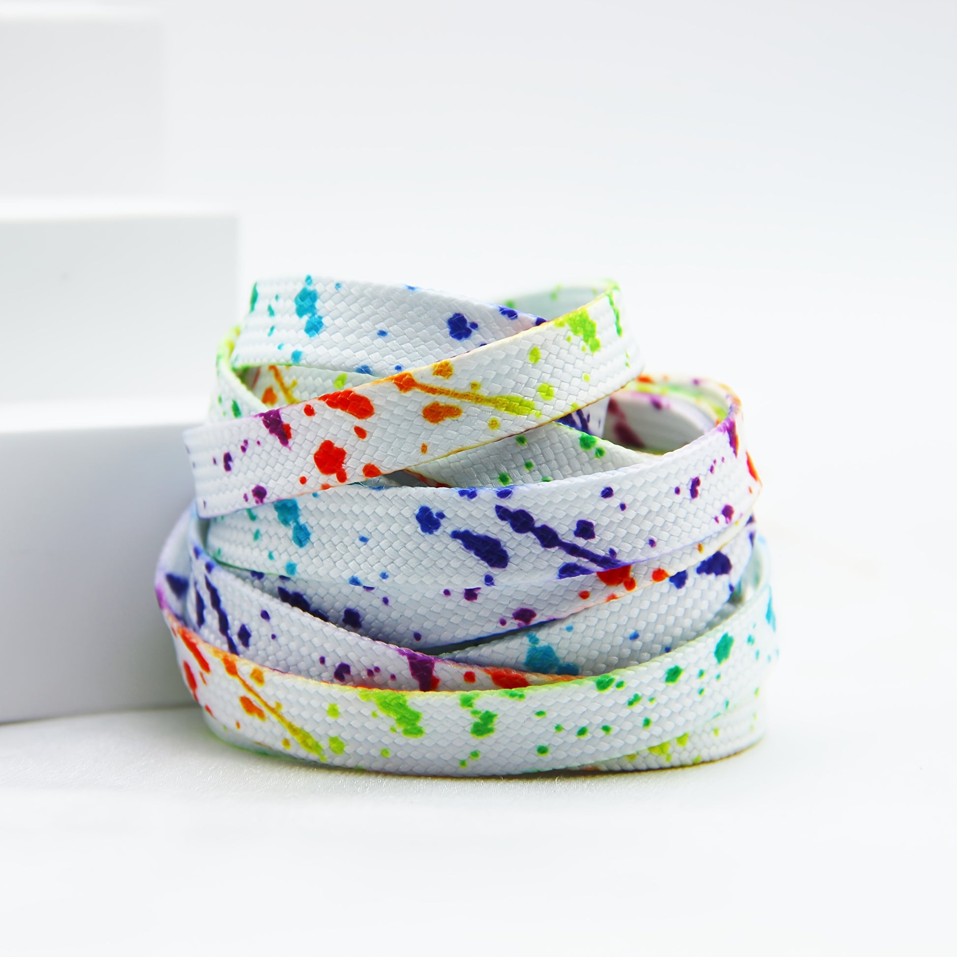 Unisex Canvas Shoe Laces Colorful Ink Tie Dye Pattern 2 Pairs