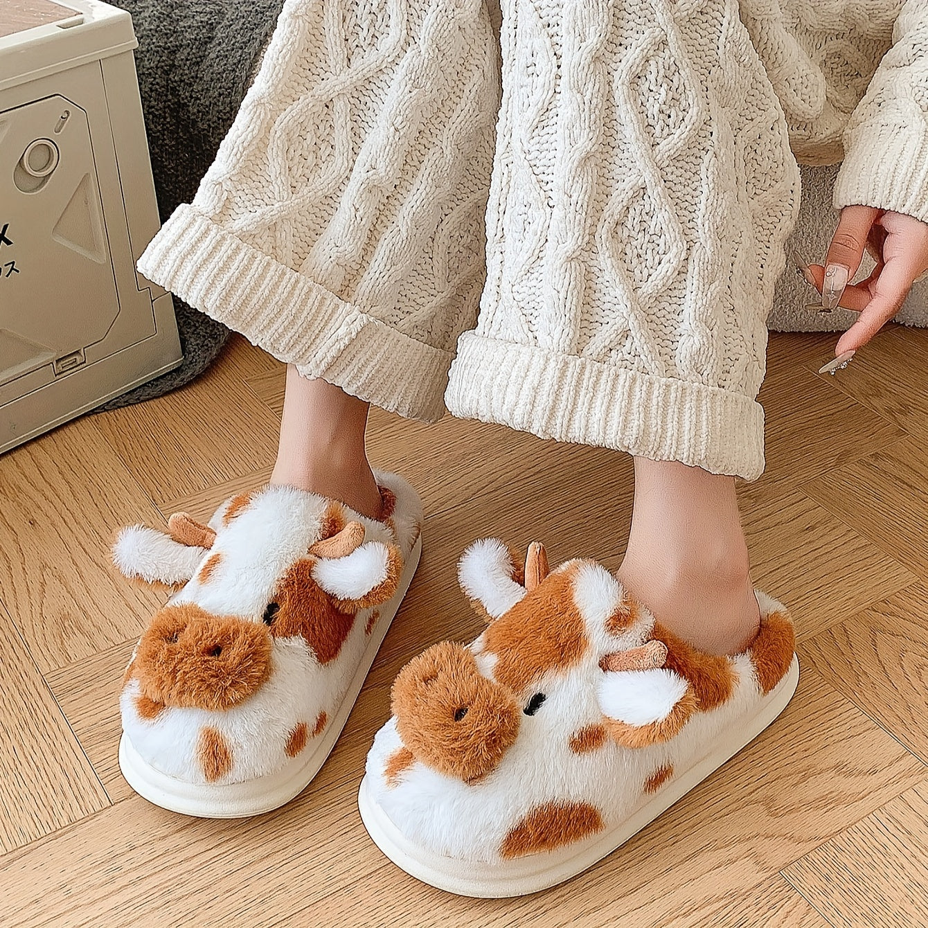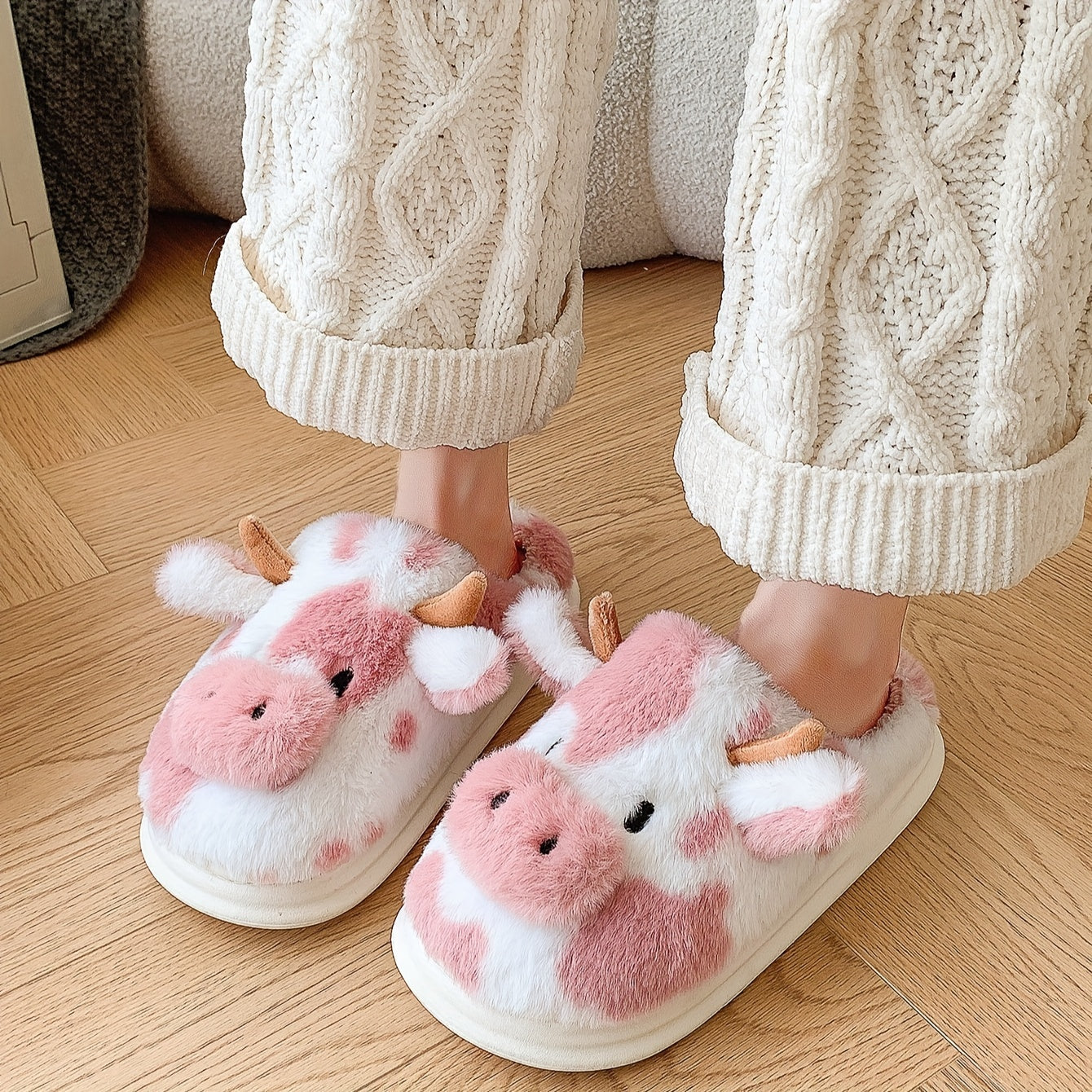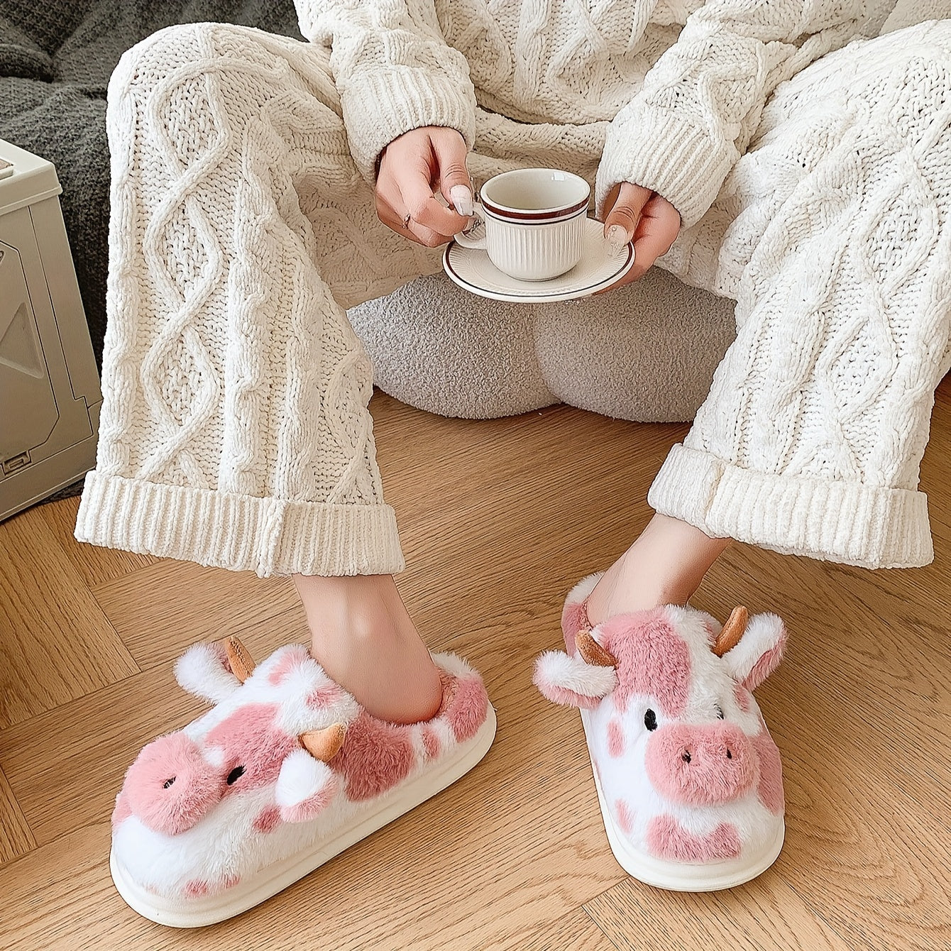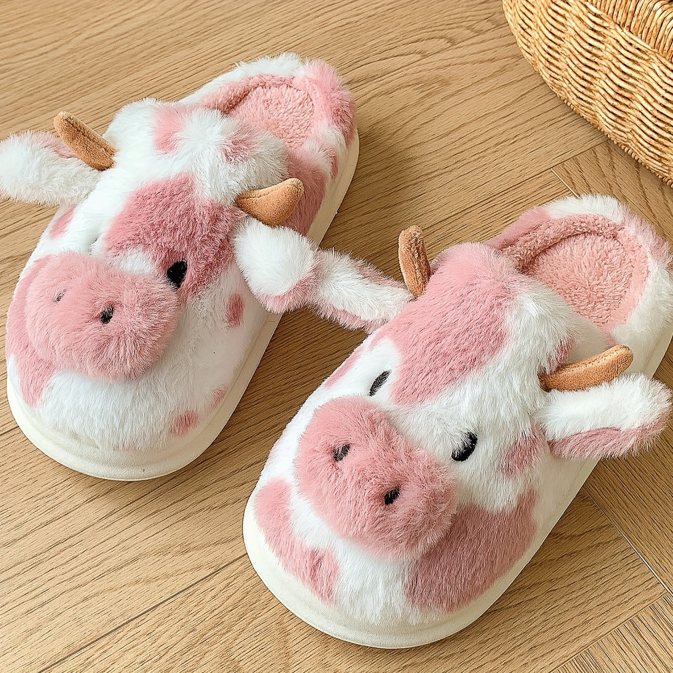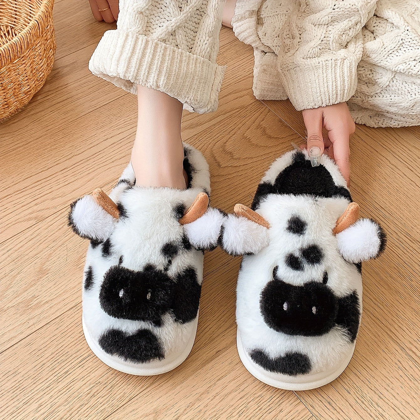 Uniseks inək boshi bosilgan yopiladigan shippaklar yumshoq mato ichki uy poyabzal