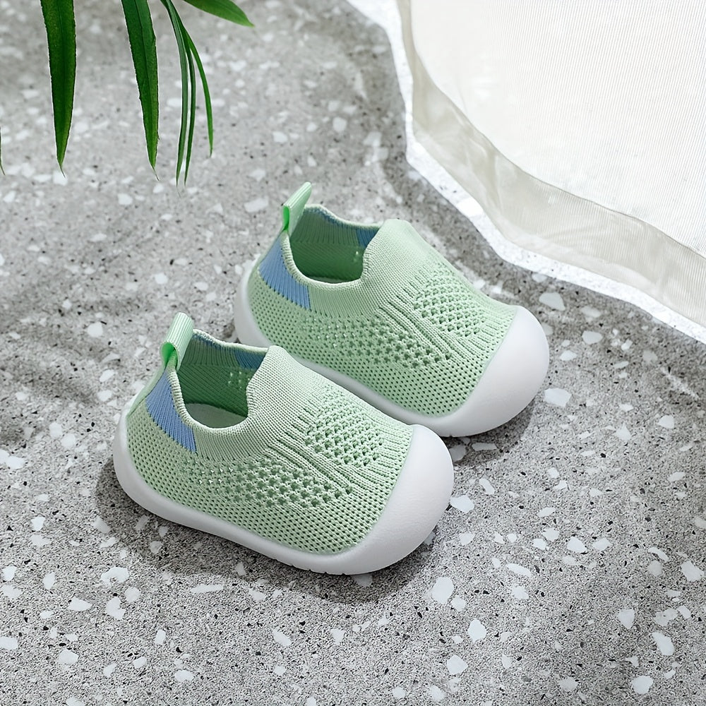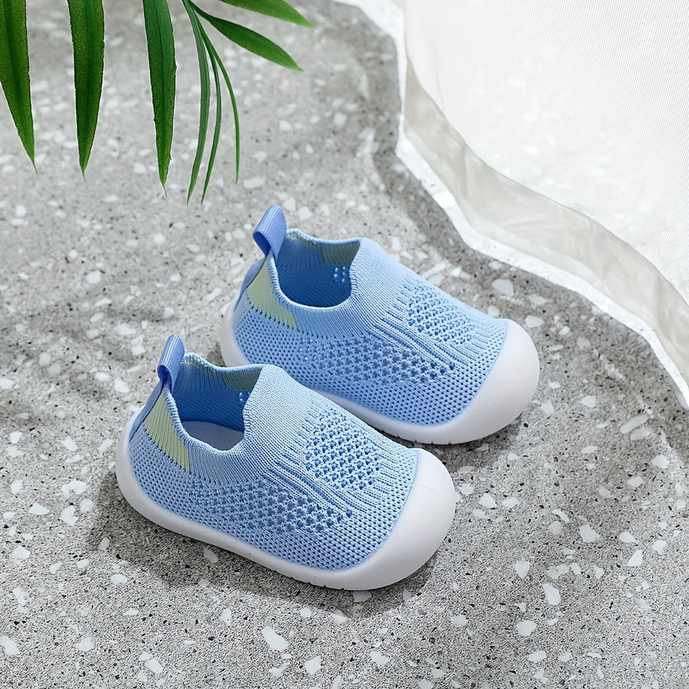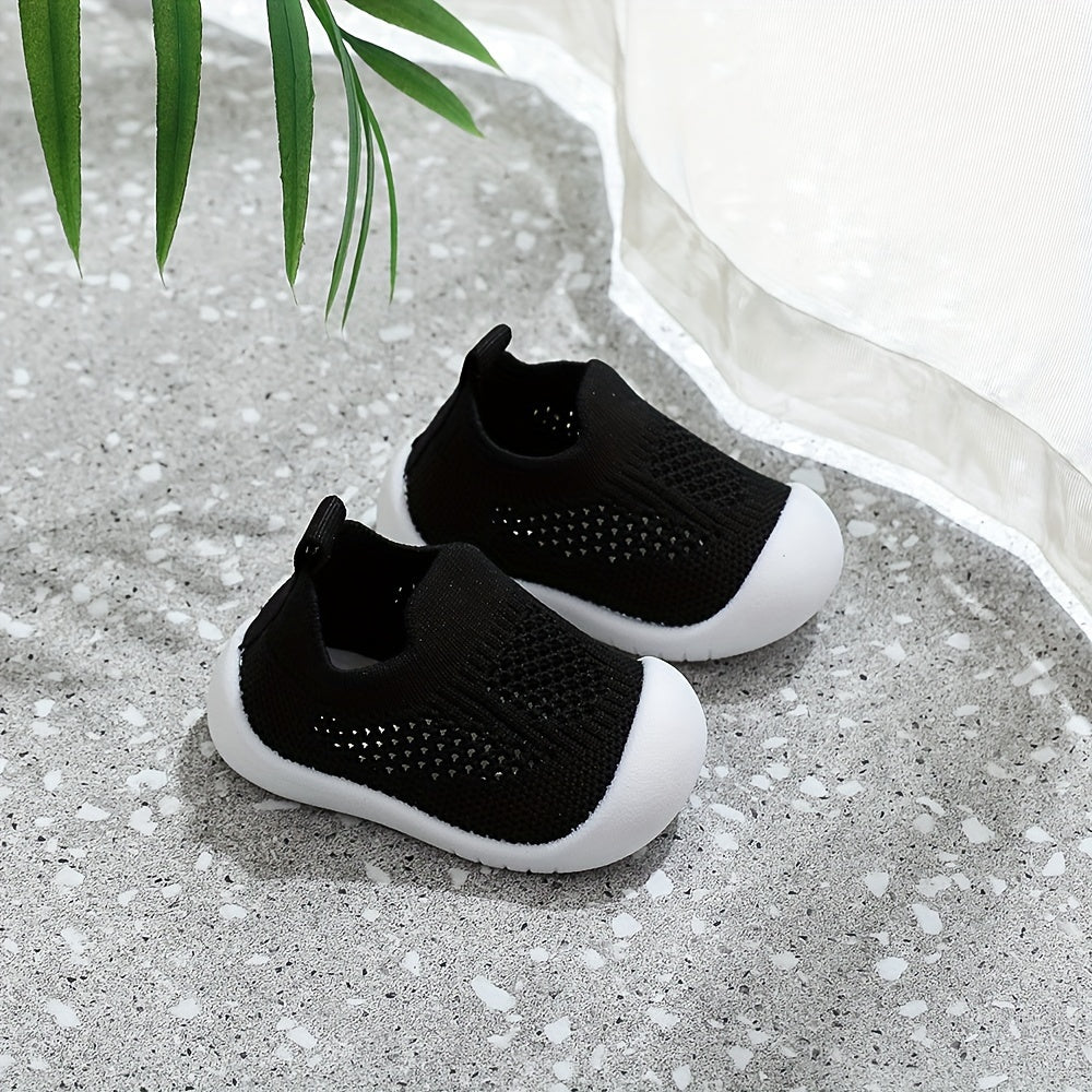 Erkaklar va yosh bolalar uchun mato ichki qismi, PVC tagligi va bir xil rangli dizayni bo'lgan uniseks chaqaloq krossovkalari.