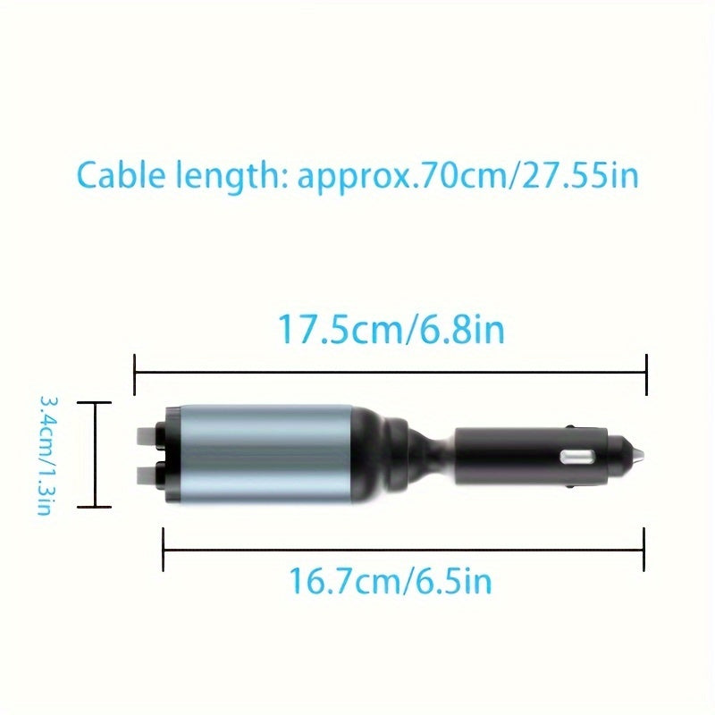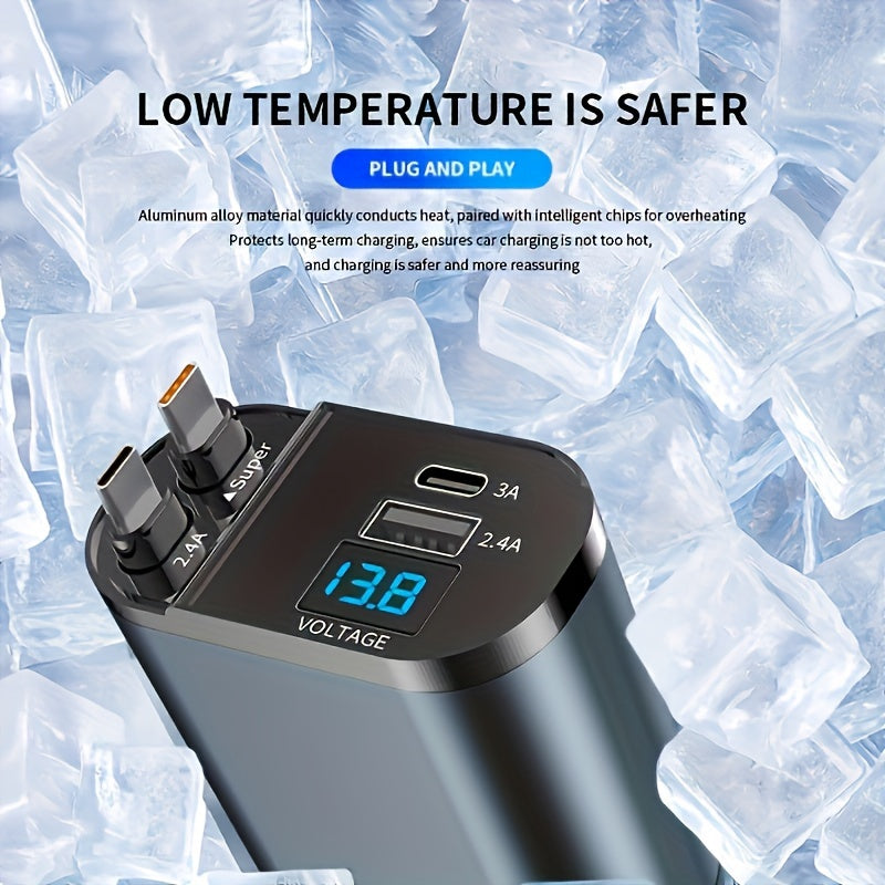 Universal 4-in-1 tezkor tortib olinadigan avtomobil zaryadlagichi USB Type-C kabeli