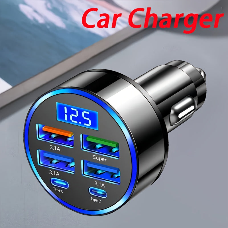Universal 6-in-1 Avtomobil telefon zaryadkasi LED displey va tez zaryadlash bilan