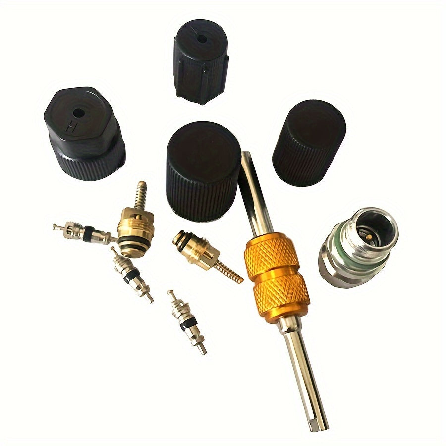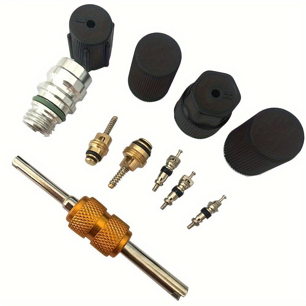 Universal AC R134A xizmat porti klapanining chang qopqog'i, havo konditsioneri klapan yadro olib tashlash va o'rnatish asboblari to'plami 11 dona bilan