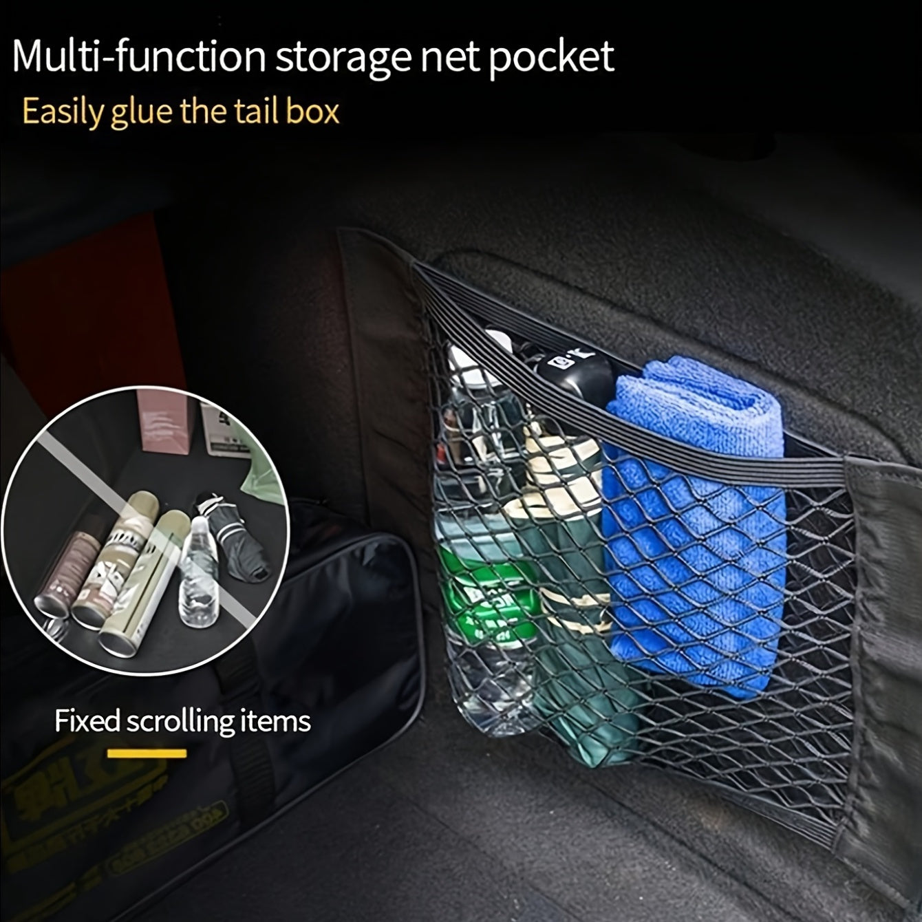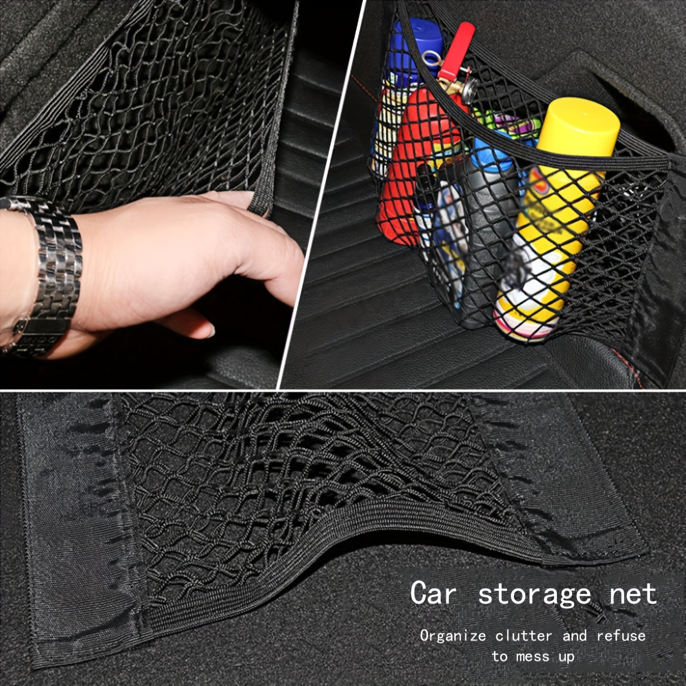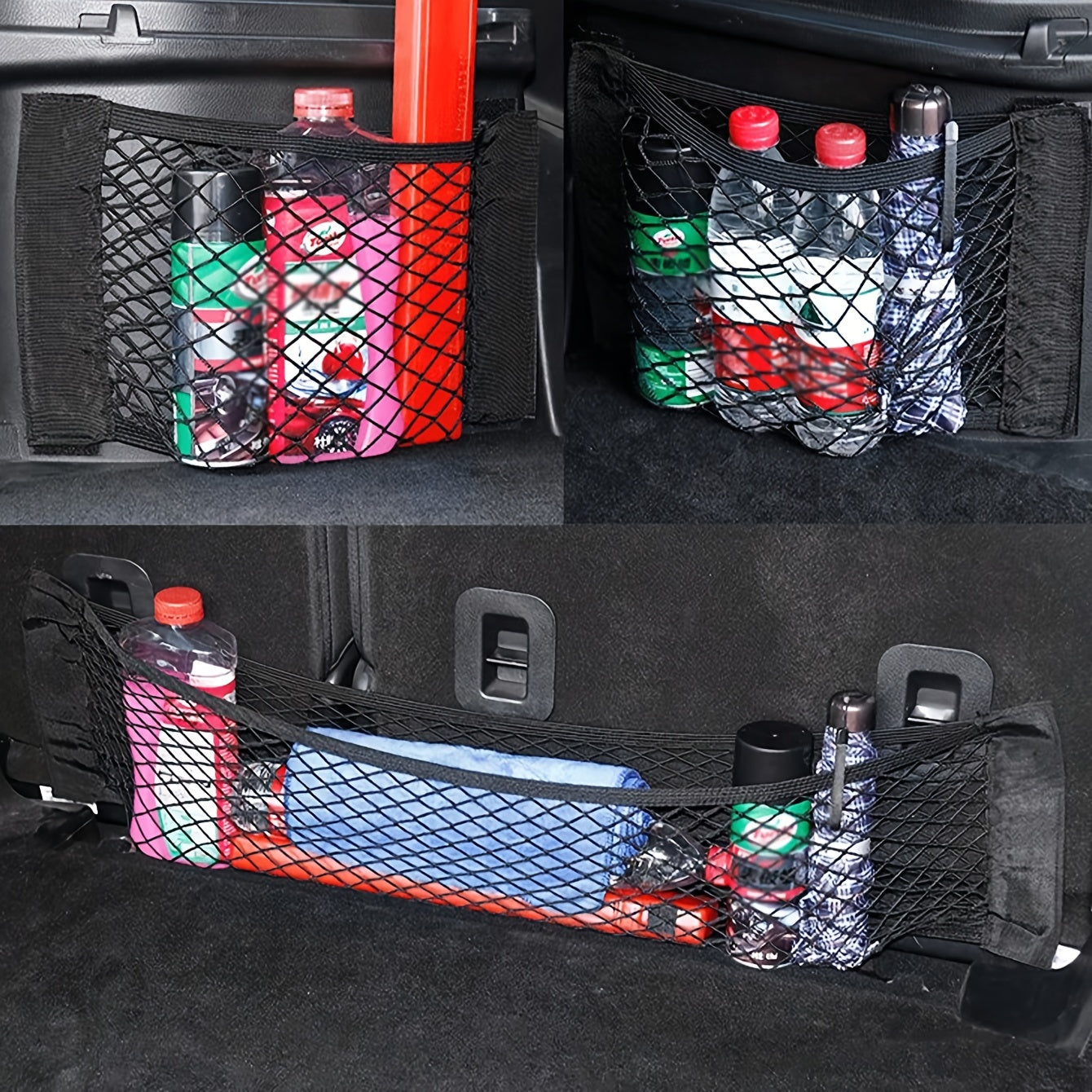 Universal sozlanadigan elastik polyester avtomobil bagaj tashkilotchisi va yuk tarmog'i bilan