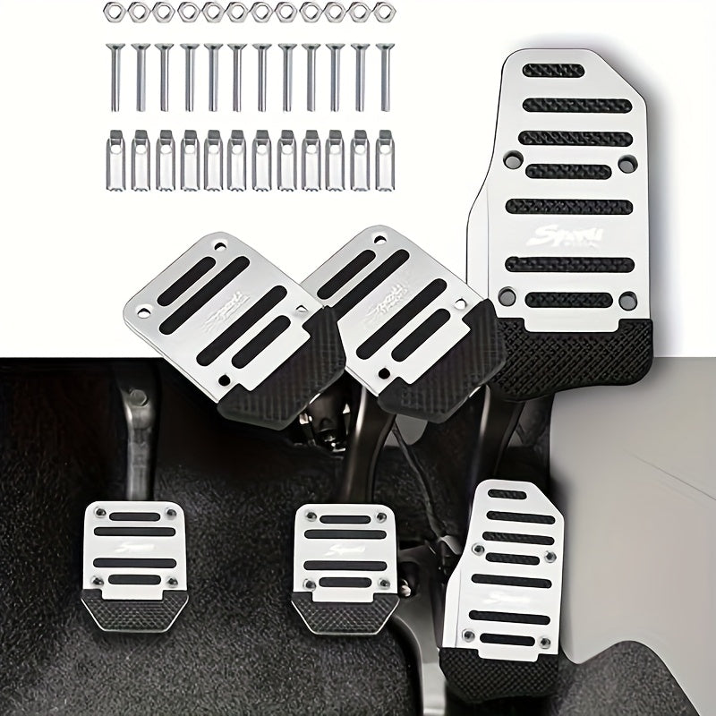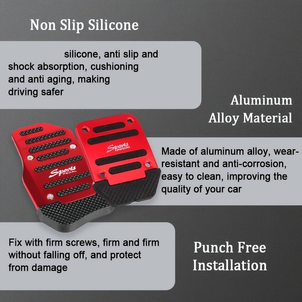 Universal alyuminiy avtomobil pedali qoplamasi to'plami 3 ta paket, sirpanmaydigan tormoz, gaz oyoq padlari