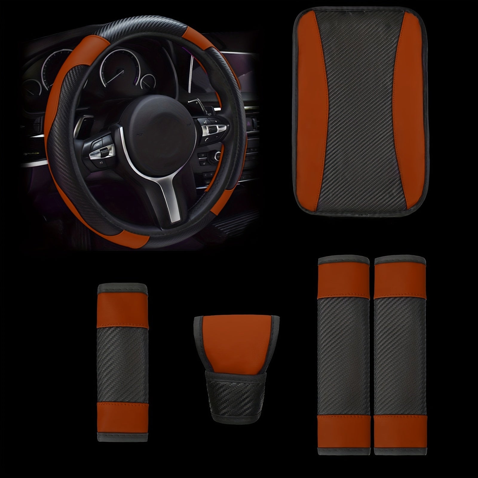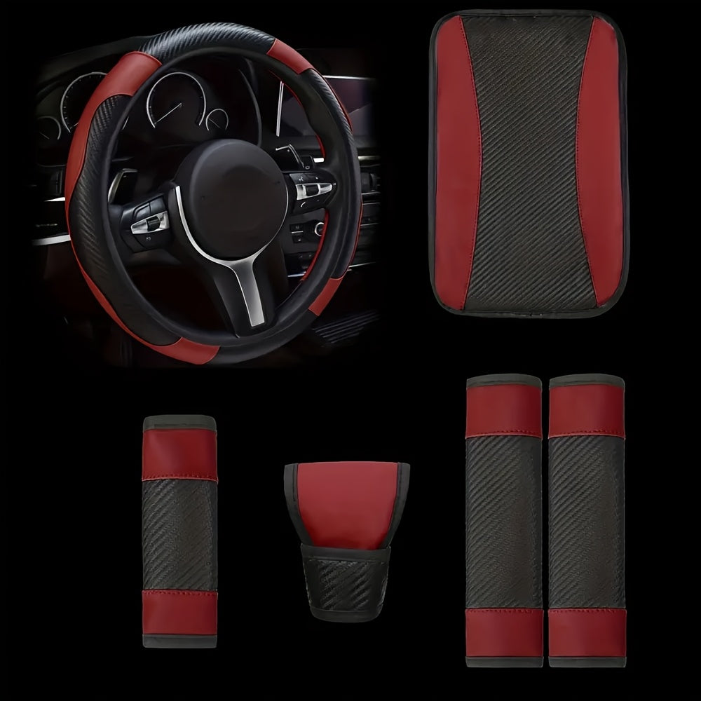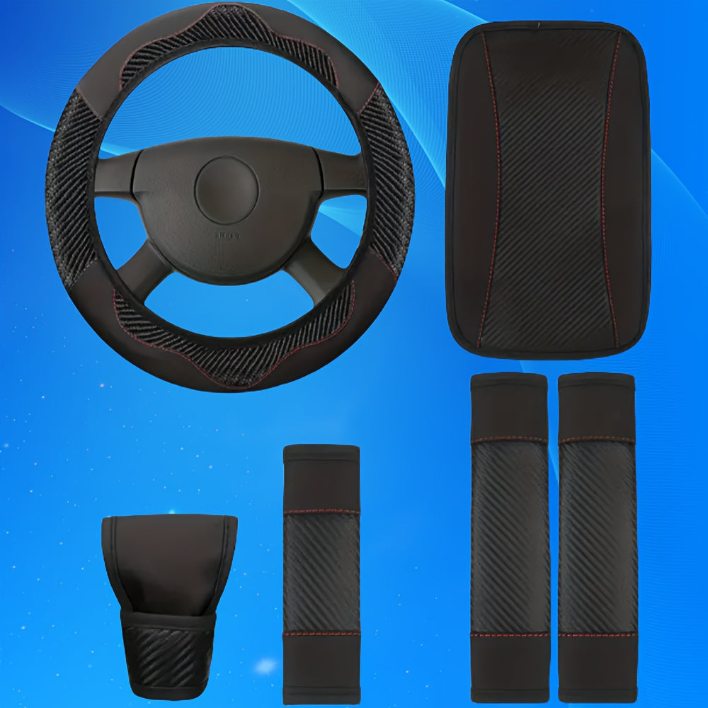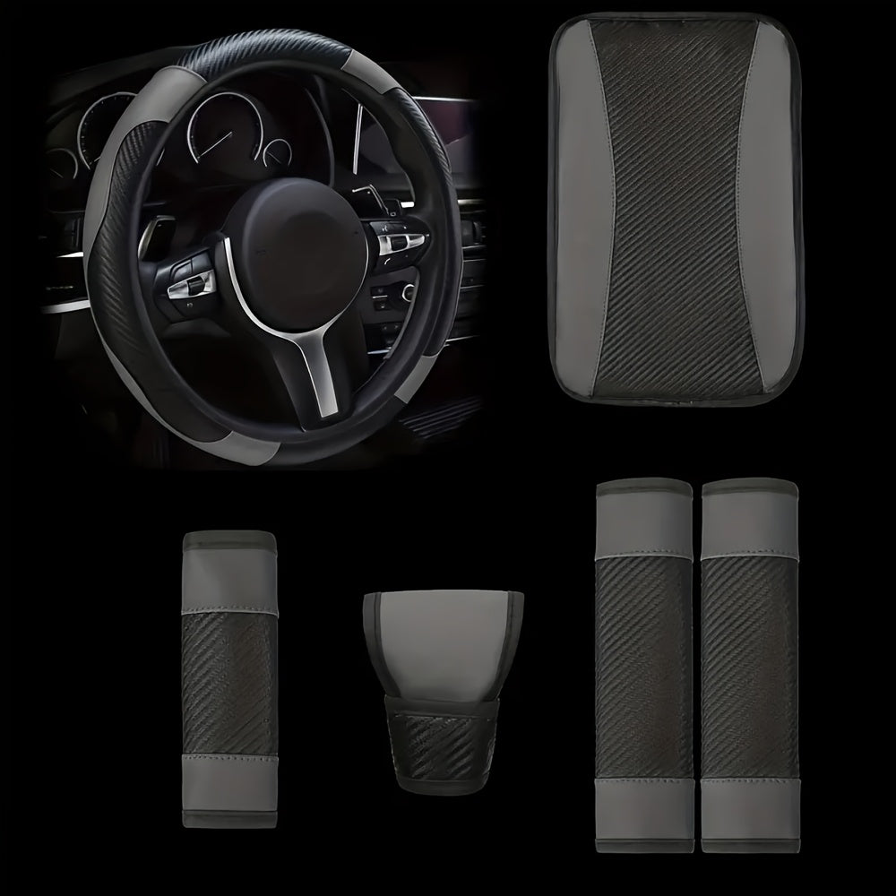 Universal avtomobil ichki bezaklar to'plami, 6 ta qism, PU charm bilan boshqarish g'ildiragi qopqog'i