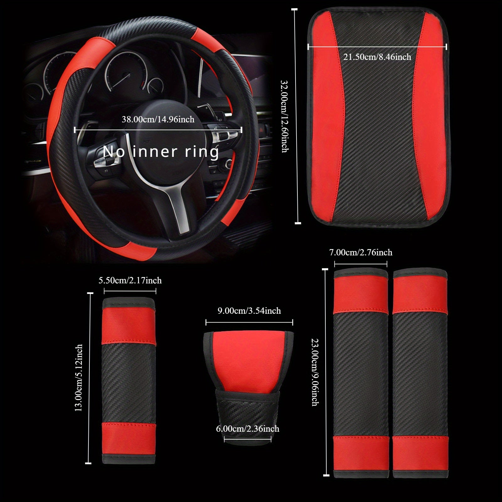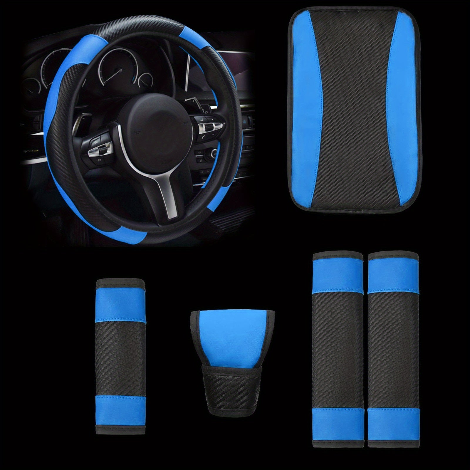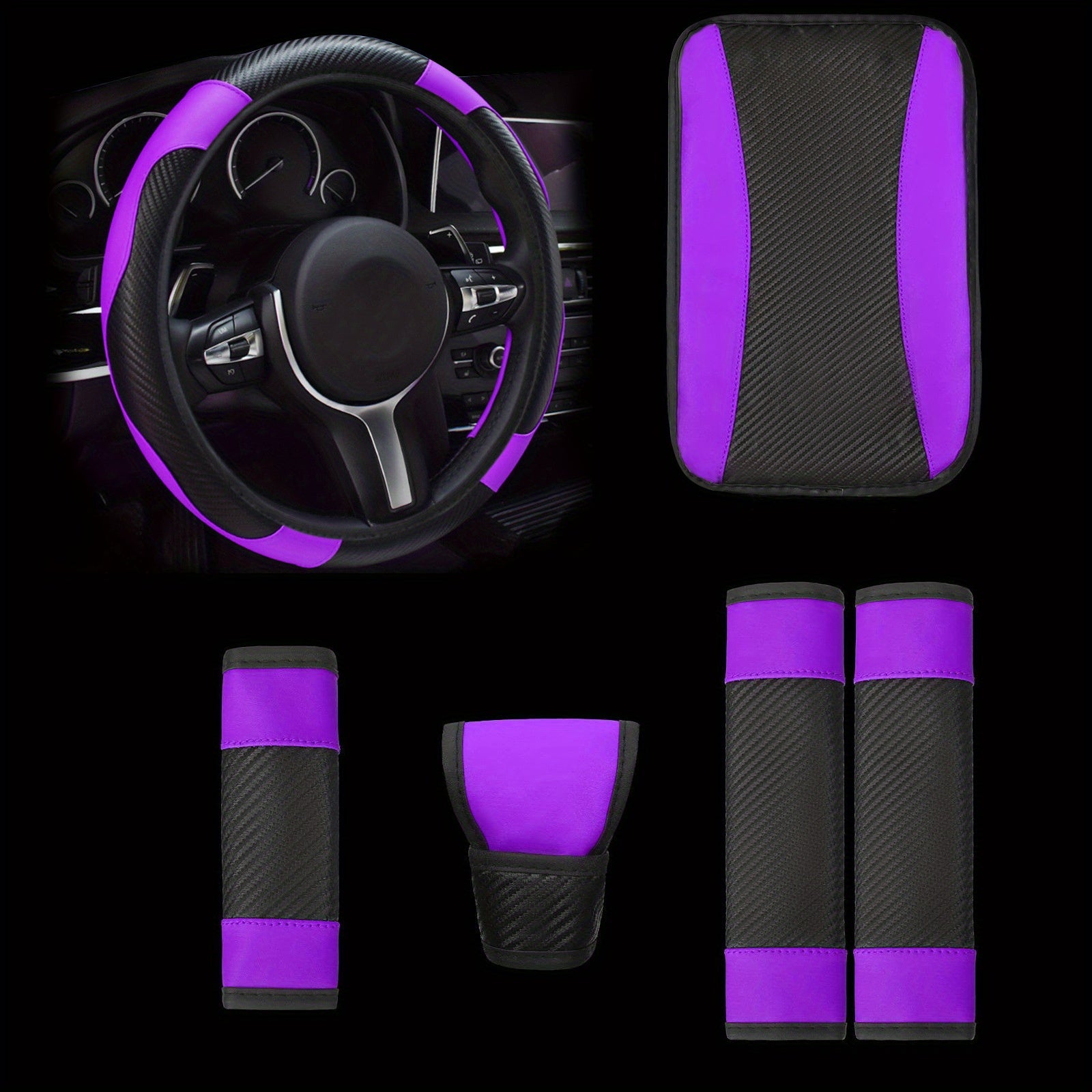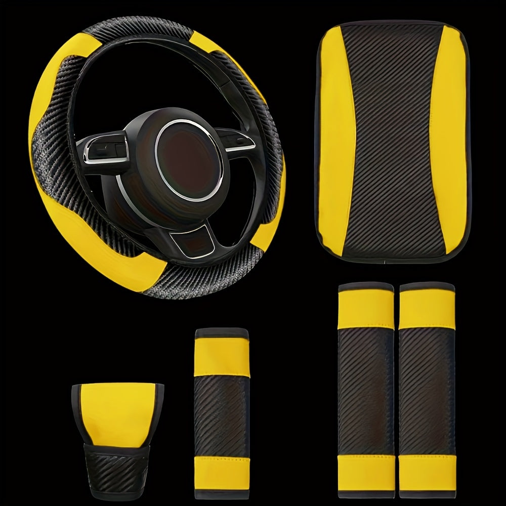 Universal avtomobil ichki bezaklar to'plami, 6 ta qism, PU charm bilan boshqarish g'ildiragi qopqog'i