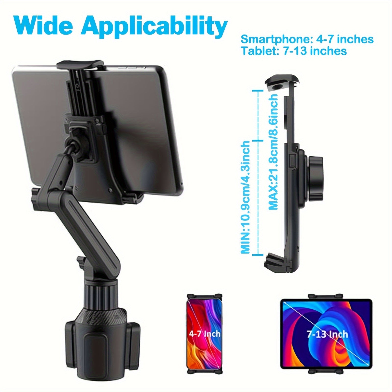 Universal avtomobil telefon va planshet uchun o'rnatish, og'ir vaznli stakan tutqich, sozlanadigan