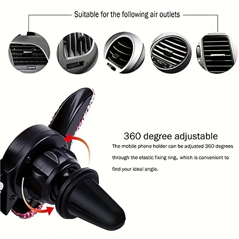 Universal avtomobil telefon o'rnatgichi sun'iy olmos bezak bilan, ikki funktsiyali havo chiqishi uchun o'rnatish