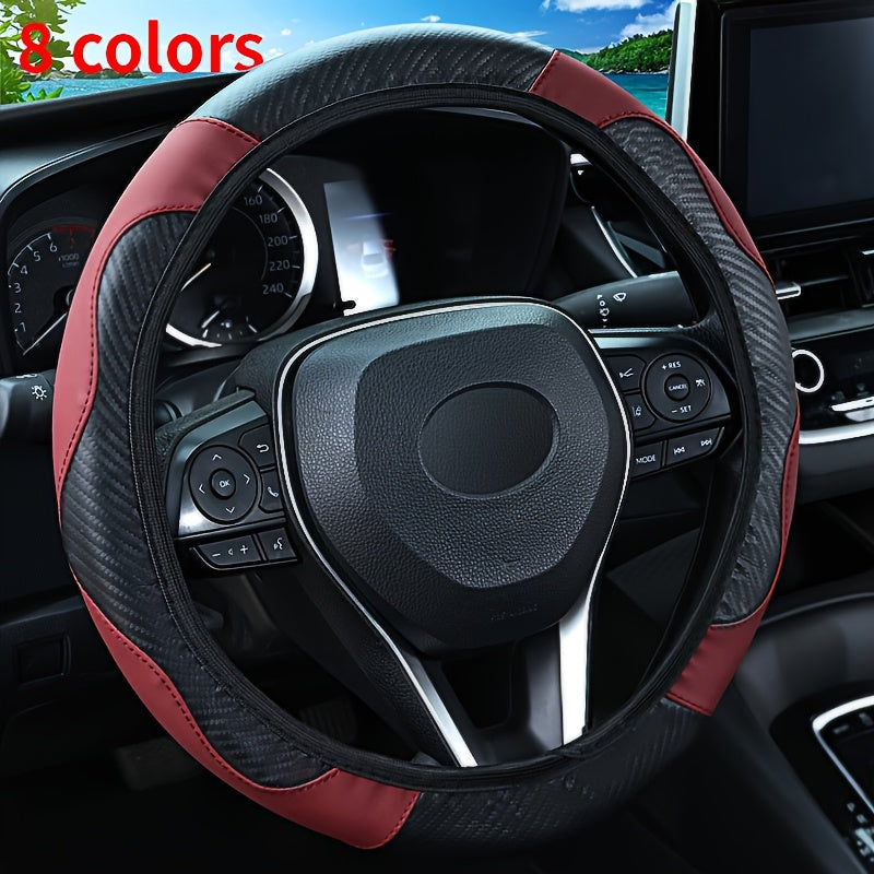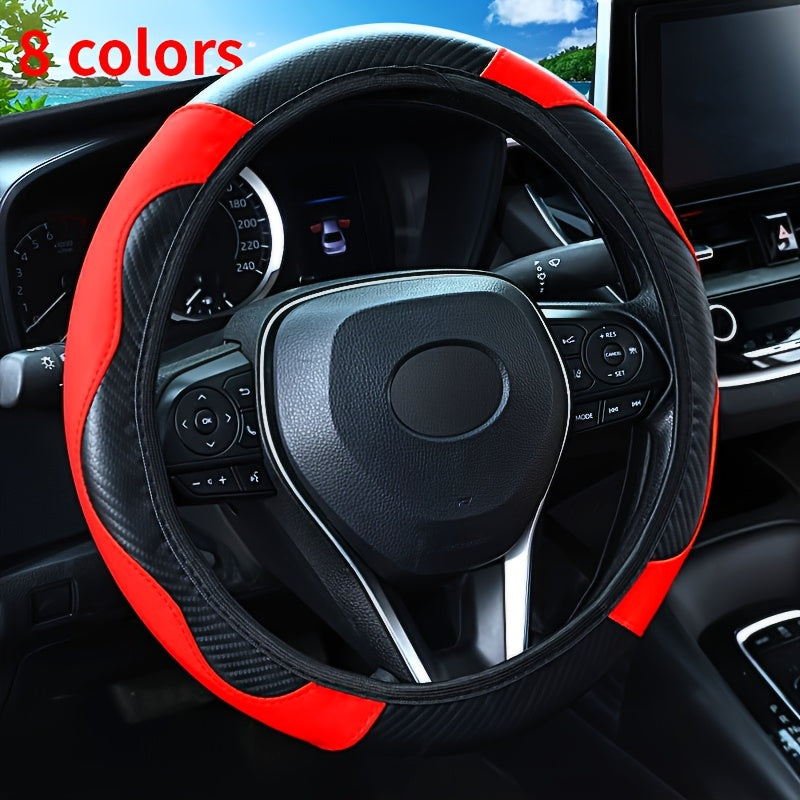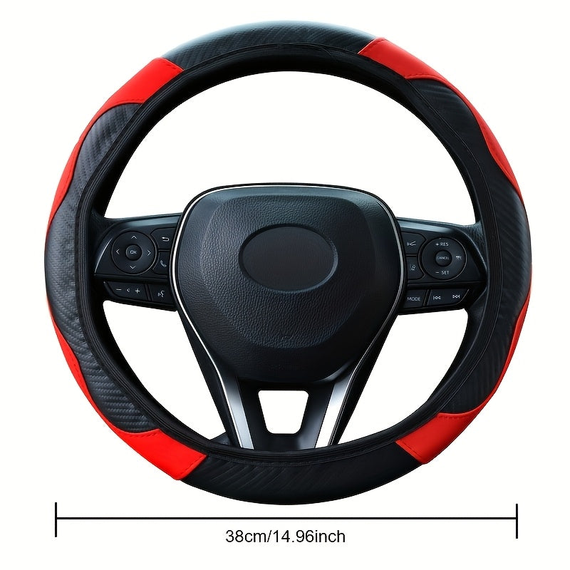 Universal karbon tolasi naqshli boshqaruv g'ildiragi qopqog'i, sirpanmaydigan PU charm, qora va qizil