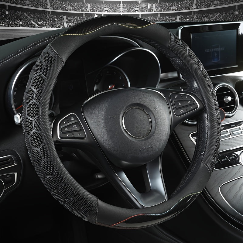 Universal charm bilan nafas oladigan, sirpanmaydigan qora charm rul boshqacha qopqog'i