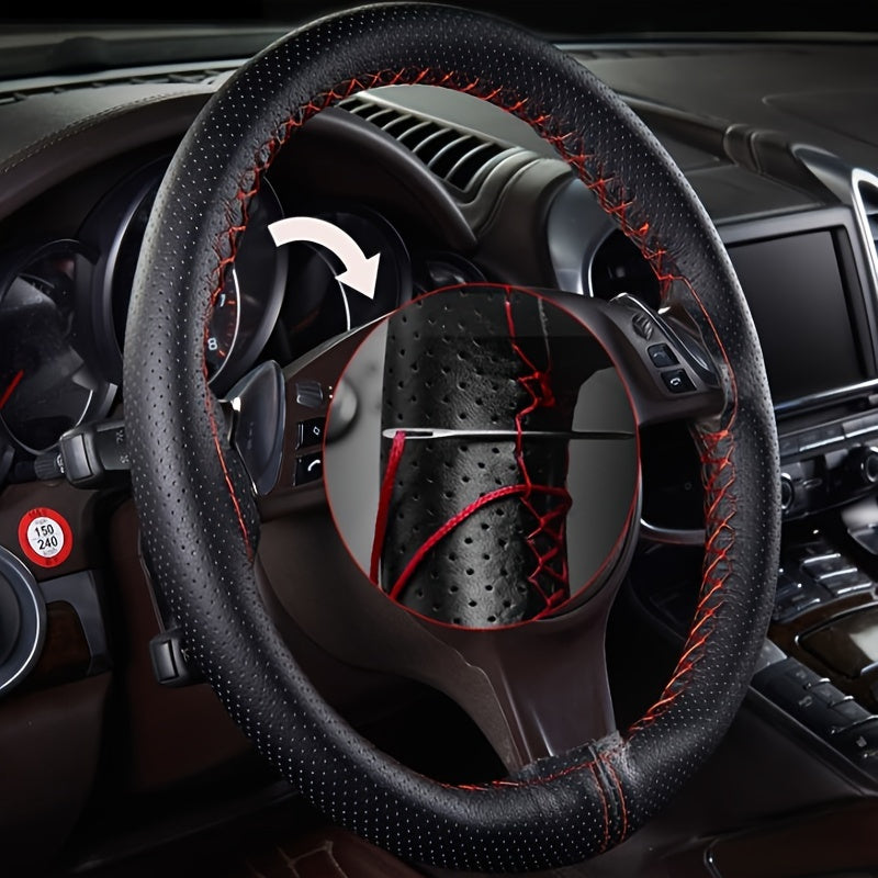 Universal charm leather rul boshqaruv g'ildiragi qoplamasi qo'lda tikilgan, sirpanmaydigan, 38cm ga mos keladi