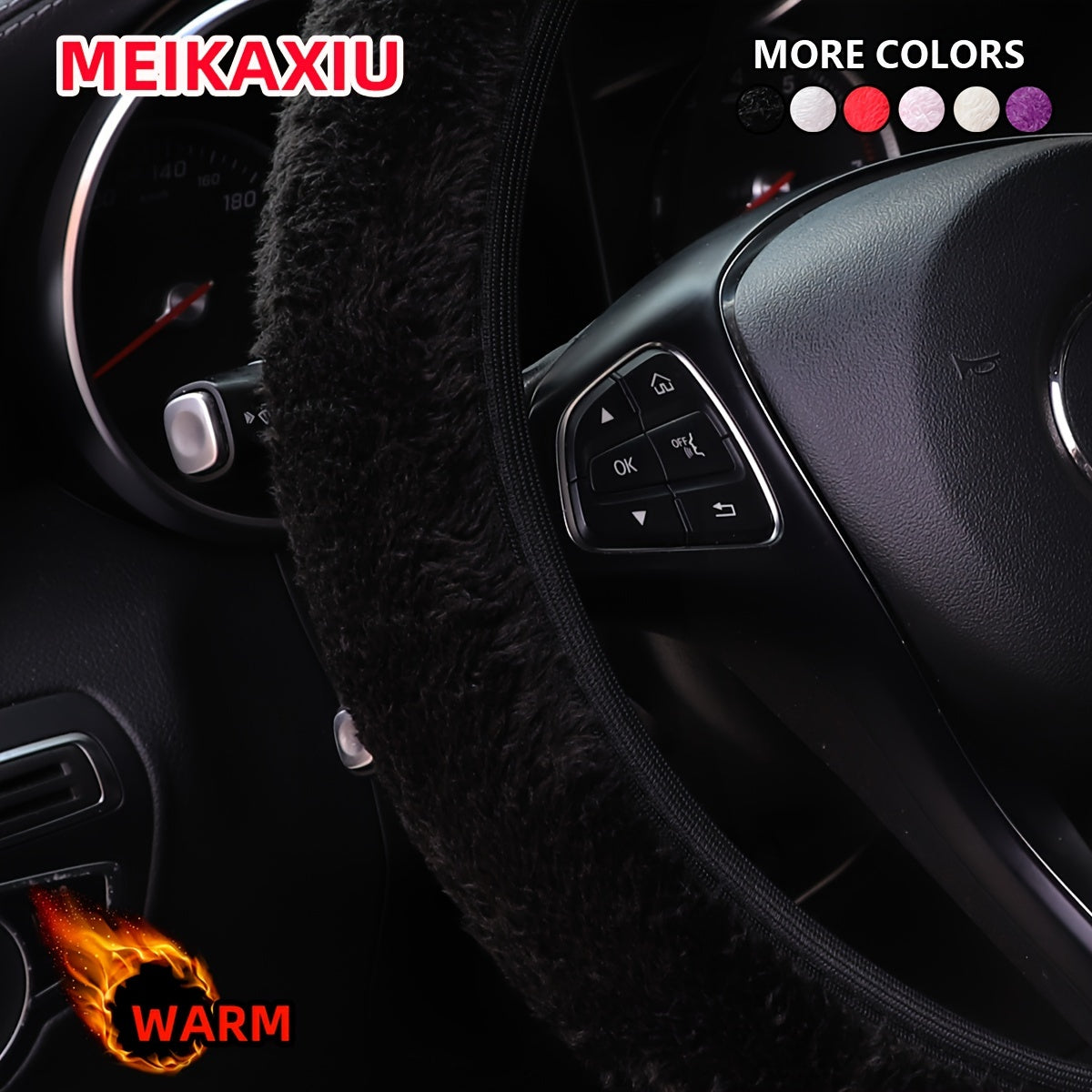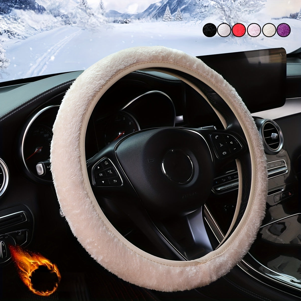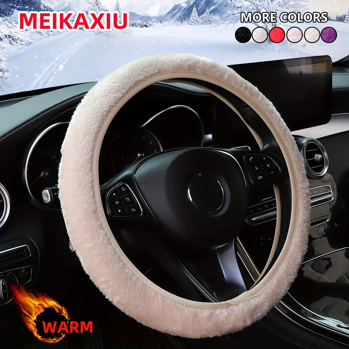 Universal qishki qisqa plush avtomobil boshqarish g'ildiragi qopqog'i 15 dyuym D-shaklida qora qizil to'q sariq kul rang bej va pushti