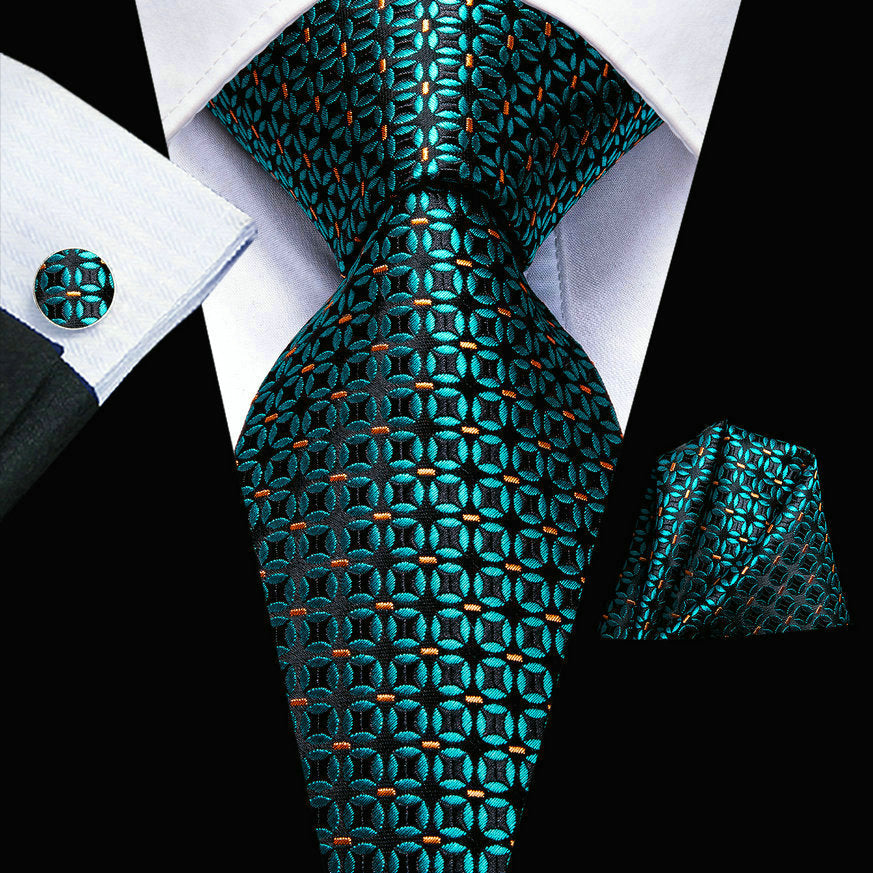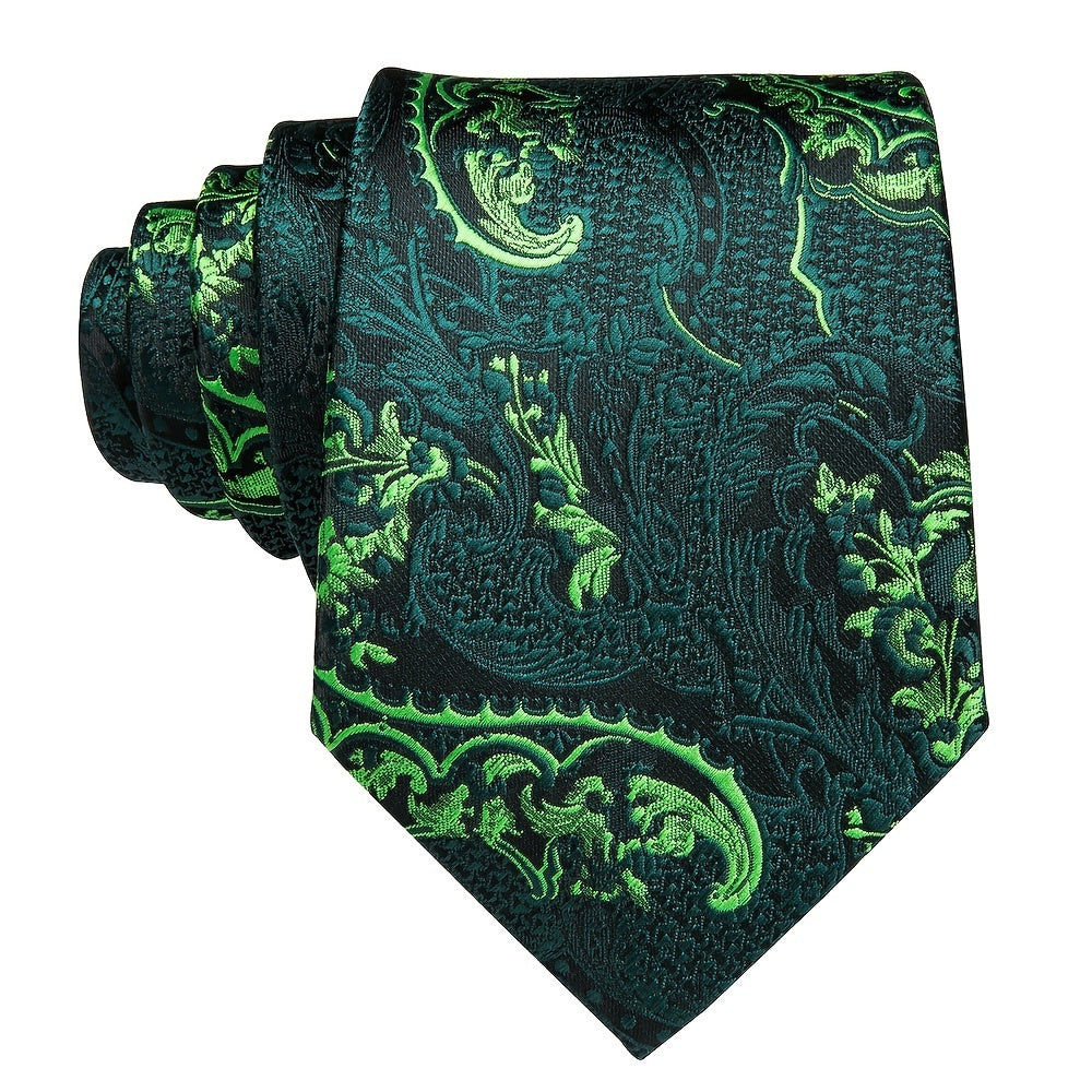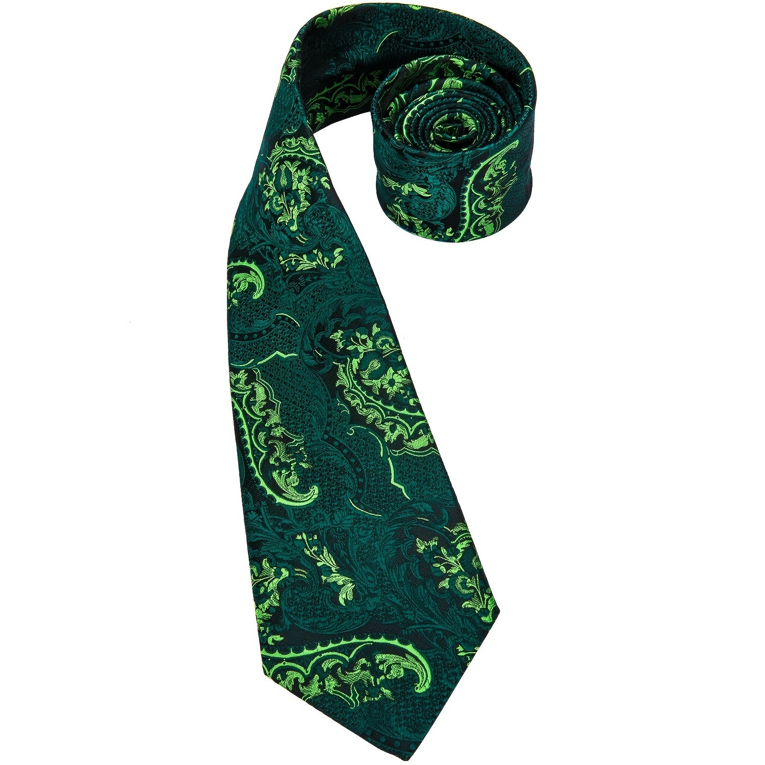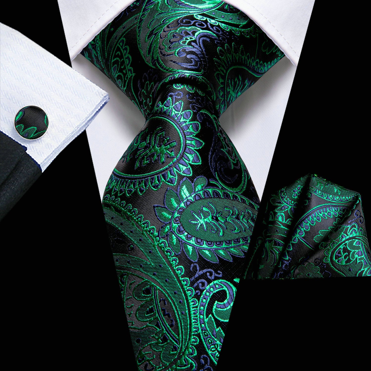 Erkaklar uchun yashil galstuk to'plami, manşetli bog'lamlar va cho'ntak sharf bilan, to'ylar va biznes uchun