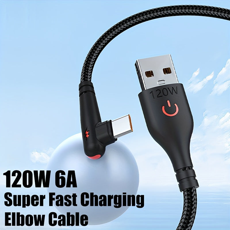 USB-C 90-Daraja Burchakli Kabel Tez Zaryadlash va Ma'lumot Uzatish uchun Samsung, Xiaomi, Redmi, Huawei va boshqalar. O'yin va Avtomobil zaryadlash uchun Telefon Zaryadlash Kabeli.
