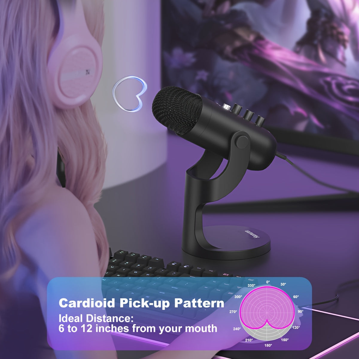 USB kondensator mikrofoni, ovoz va kuchni boshqarish bilan, podkastlar, o'yinlar va translyatsiyalar uchun aniq ovoz. PS4/5, Mac va Windows bilan mos keladi. Kabel, shamol to'sig'i, turli va