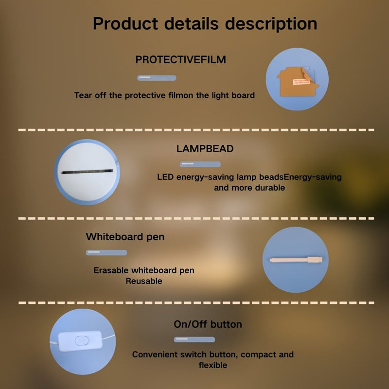 USB LED stol lampasi, o'chiriladigan yozish taxtasi, iliq muhit yoritgichi, kalit nazorati va batareya talab qilinmaydi - uy bezaklari uchun ideal sovg'a tanlovi.