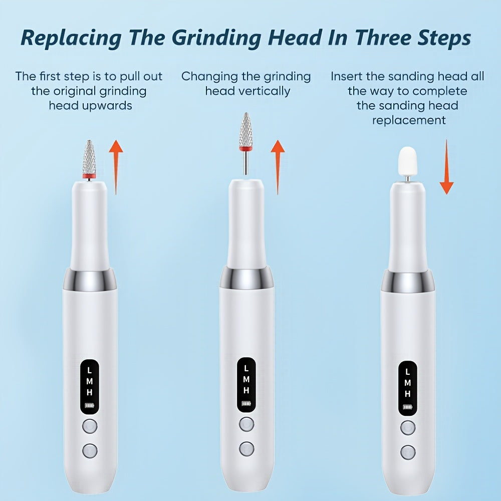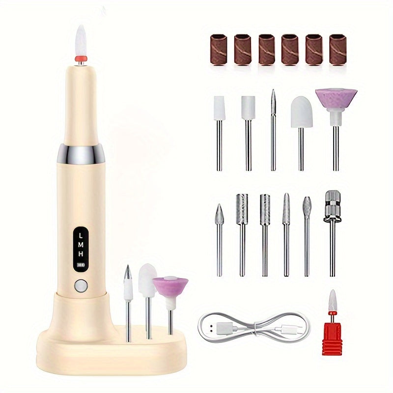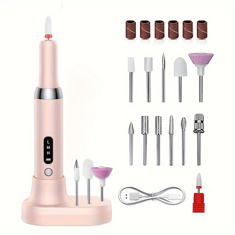 USB orqali zaryadlanadigan elektr tirnoq burg'ulash to'plami, almashtiriladigan maydalash boshliqlari va portativ tirnoq fayli to'plami.