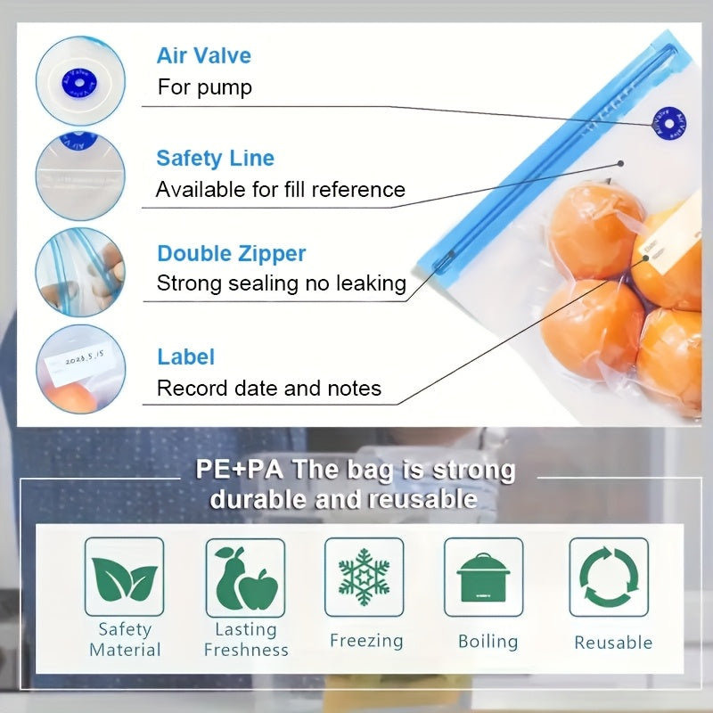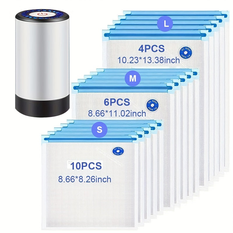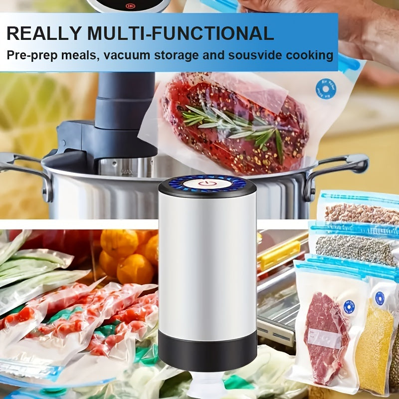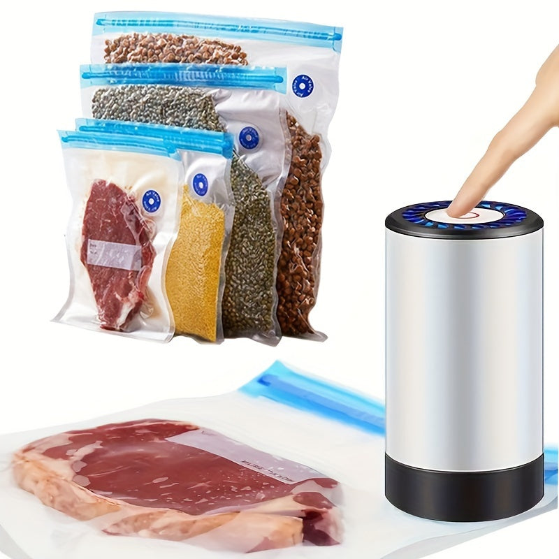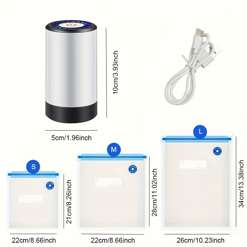 Qayta to'ldiriladigan batareyali va 3 ta zipli sumka o'lchamlari bilan elektr vakuum yopishtiruvchi oziq-ovqatni saqlash uchun