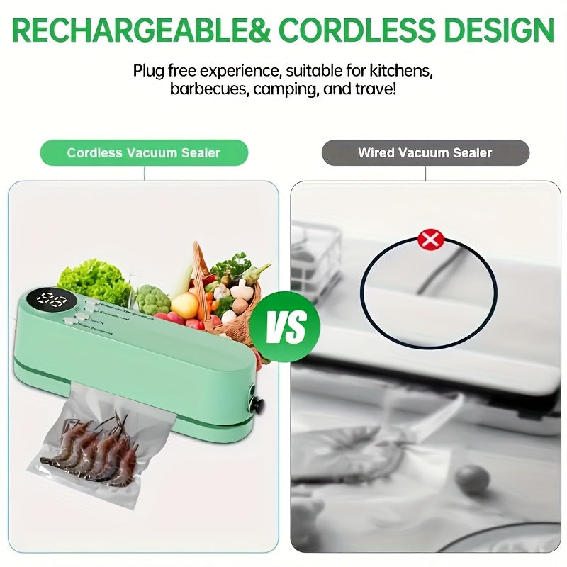 Qayta to'ldiriladigan vakuum yopish uchun LED indikatorli avtomatik oziq-ovqat saqlash qurilmasi, quruq va ho'l oziq-ovqat uchun kompaktdan oshxona asbobi