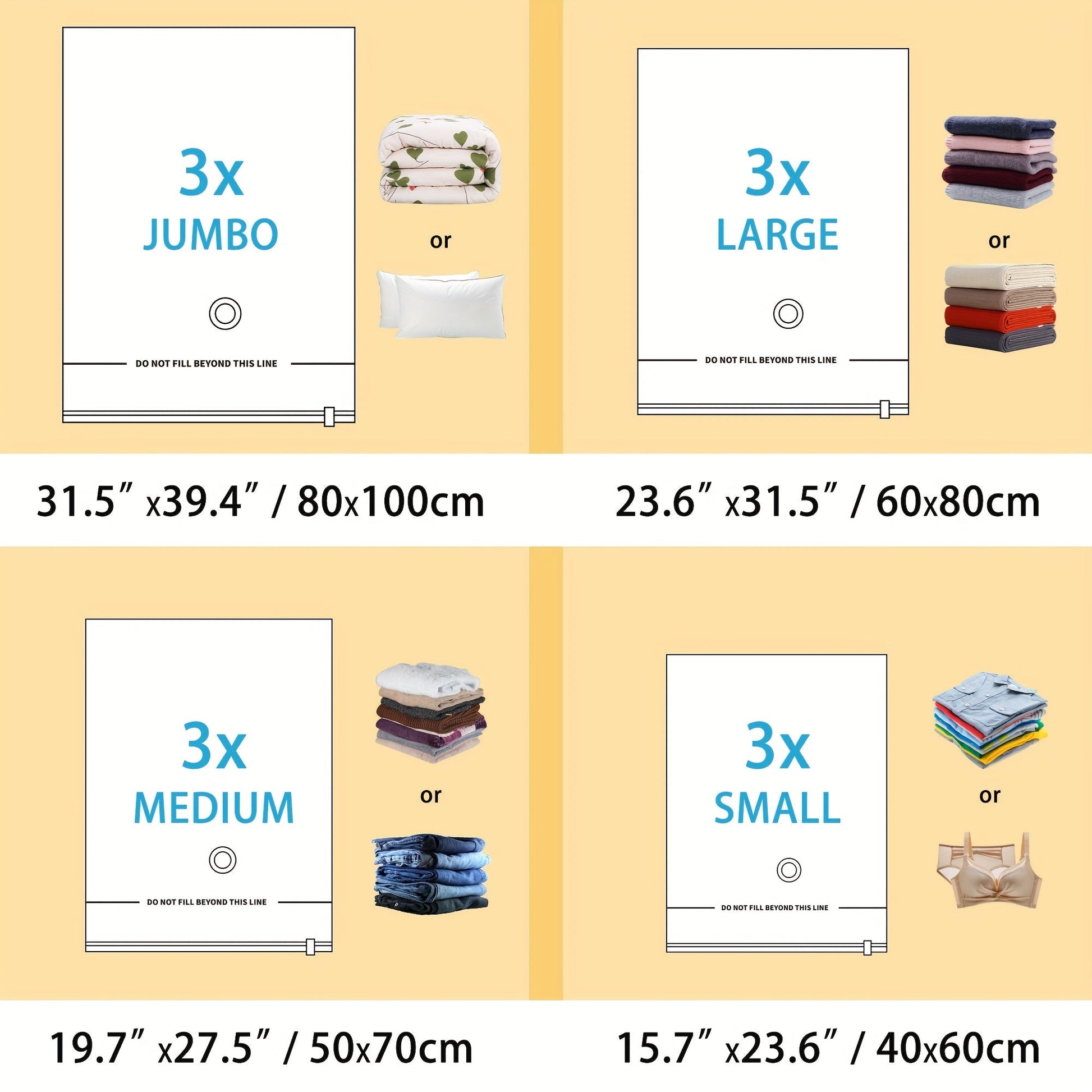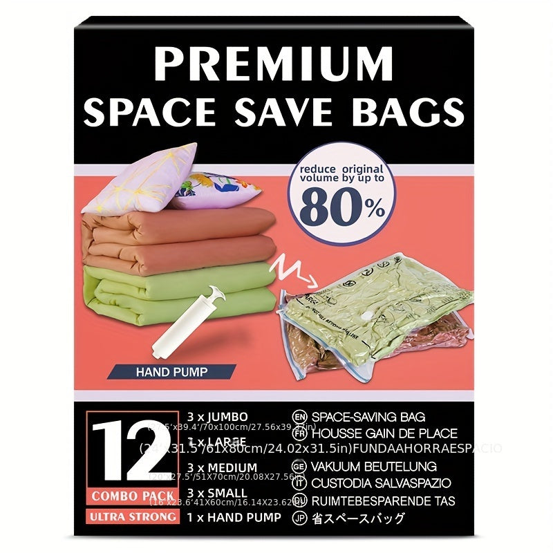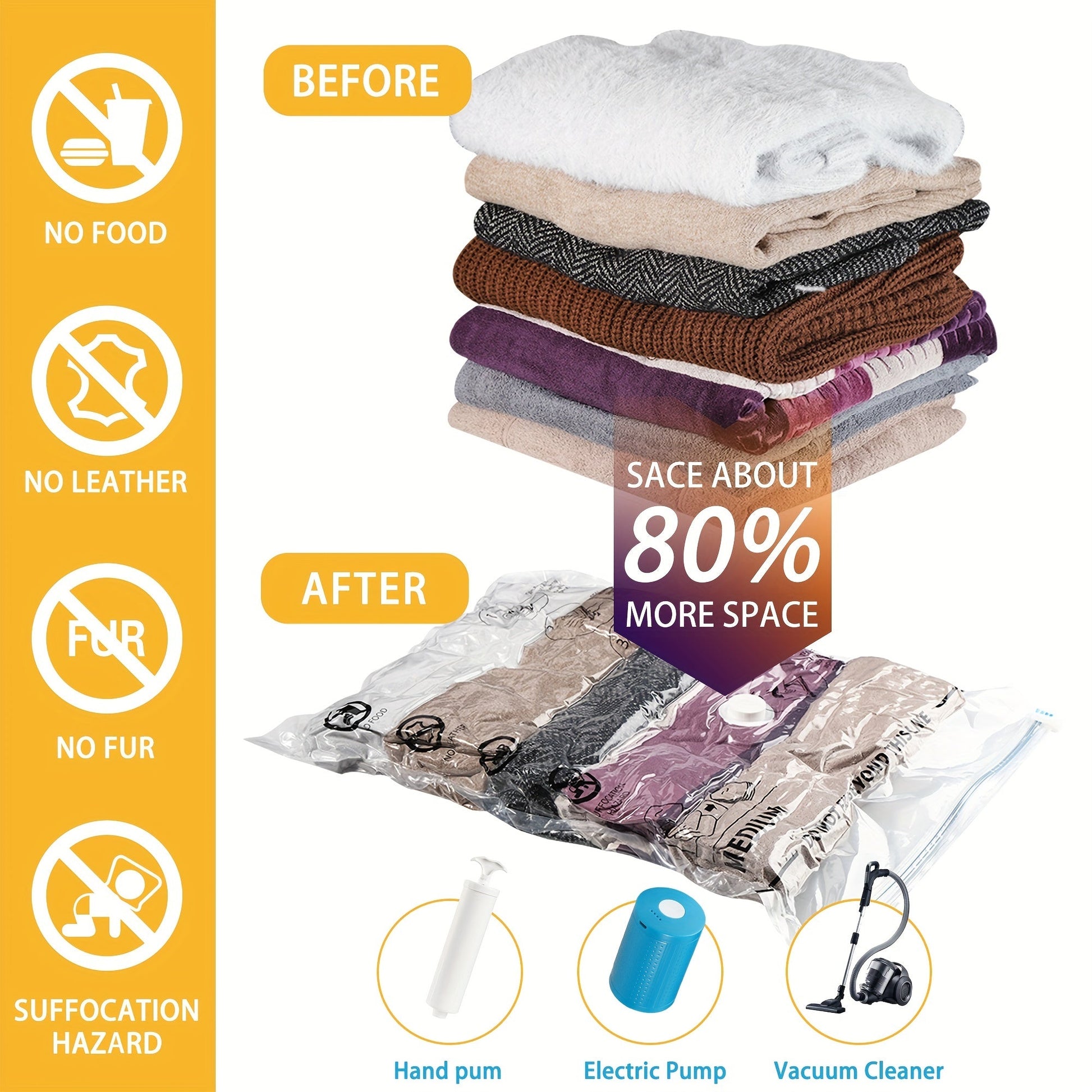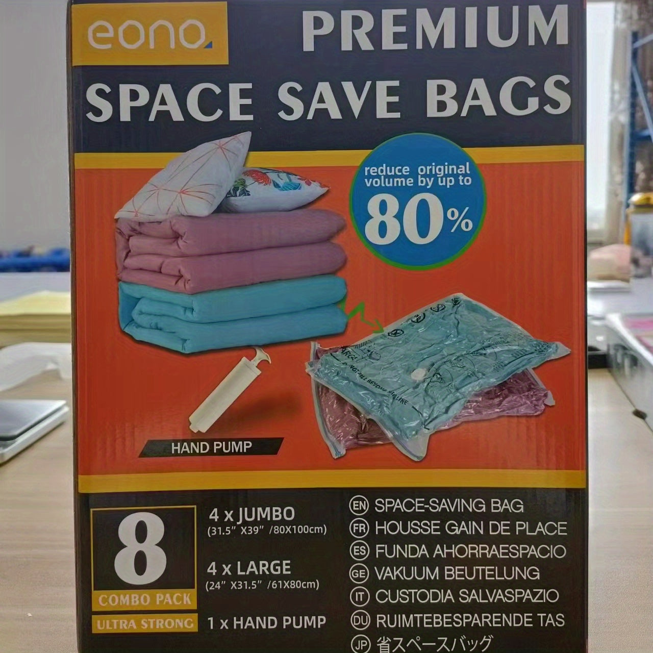 6, 8 yoki 12 ta vakuum saqlash sumkasi, qo'l nasosi bilan - kiyim, to'shak va ko'rpa uchun joyni tejovchi siqish sumkalari