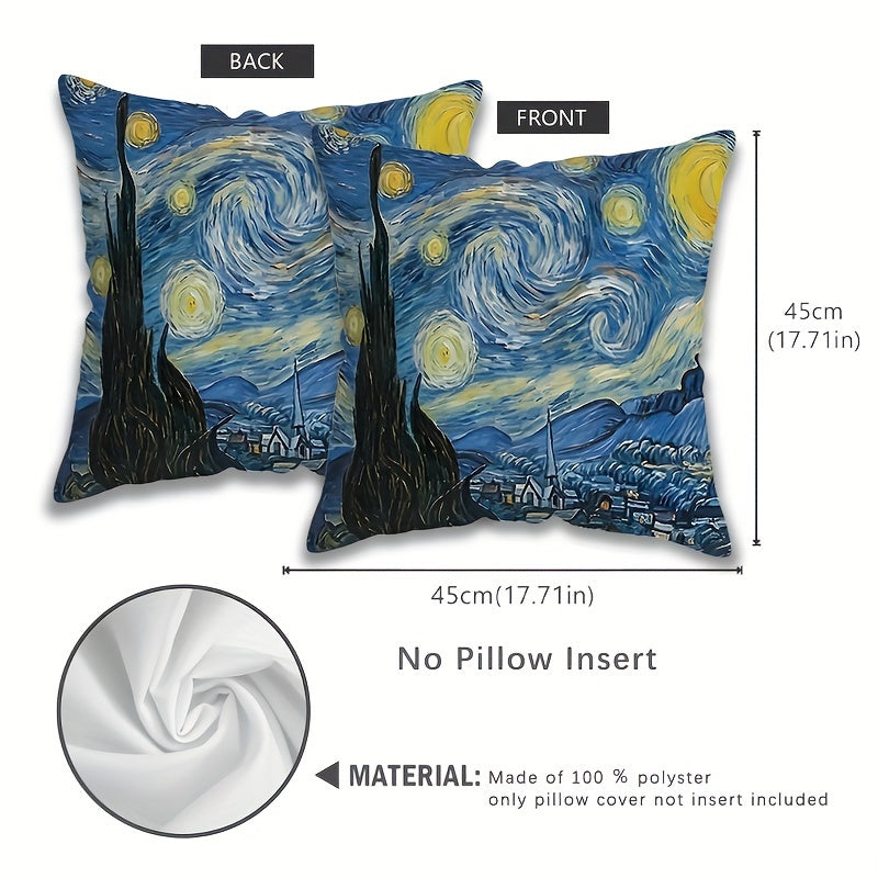 Van Gogh Yulduzli Tungi Yostiq Qopchigi: Yumshoq va Qulay, Ikkita Tomonlama Dizayn - 44.96x44.96 sm, Uy Bezash va Tadbirlar Uchun Ideal. (Qopqoq Kiritilmagan)