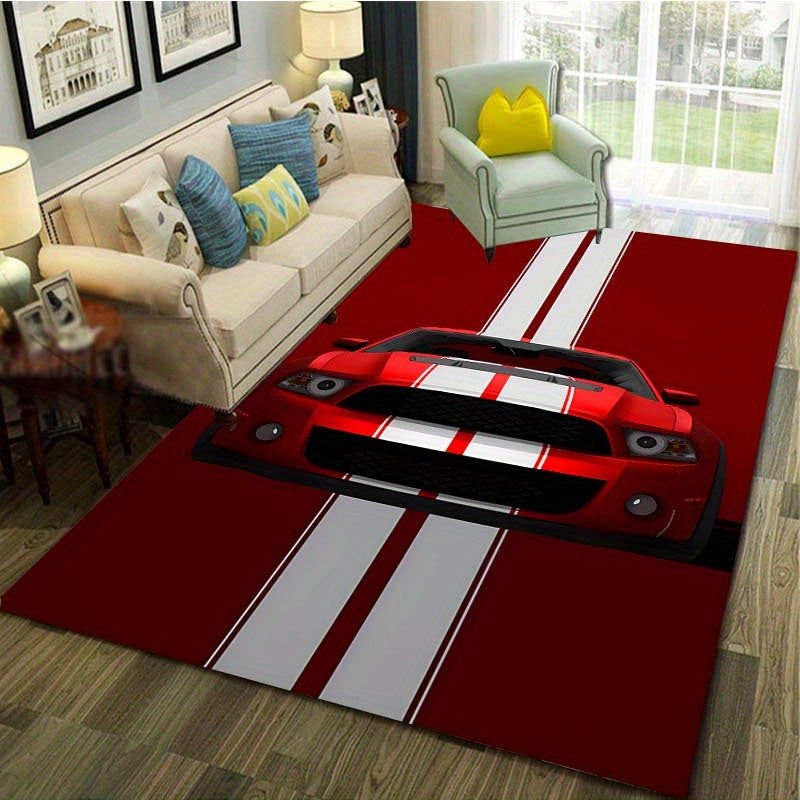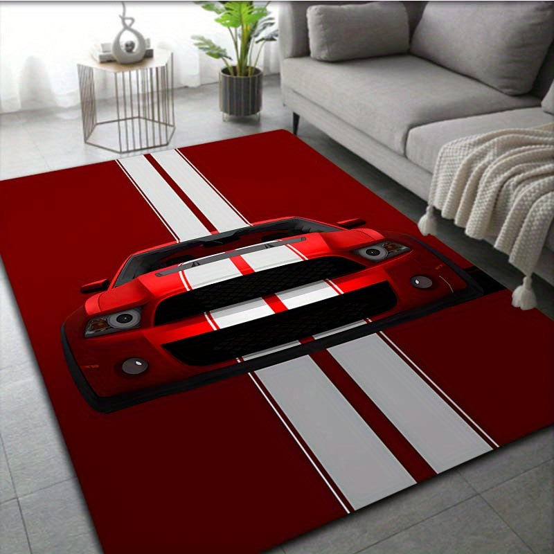 Qizil Poyga Avtomobili Dizayni bilan Velvet Kirish Tasmasi - Sirpanmaydigan, Oson Tozalash uchun Pol Gilami, Yashash Xonasi, Yotoqxona yoki Ofis uchun - 3 Ta Turli O'lchamlarda Taklif Qilingan.