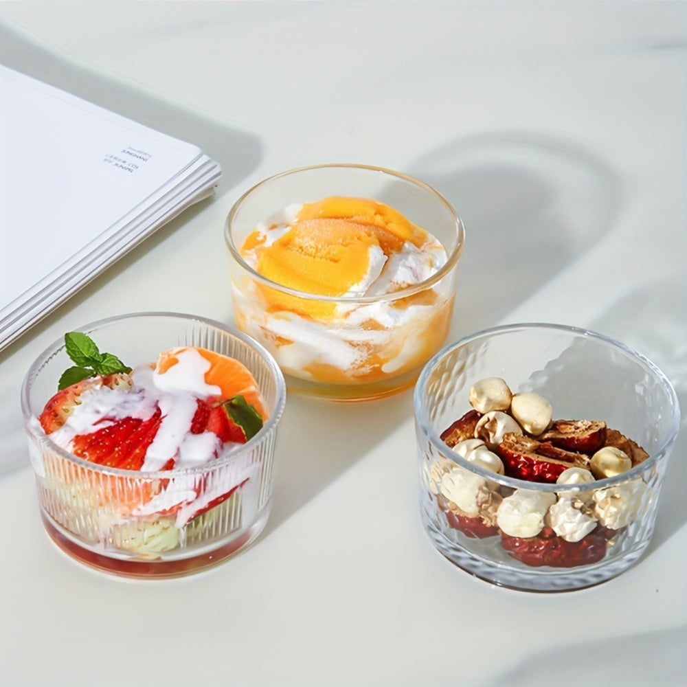 Har qanday tadbir uchun 3 o'lchamda ko'p maqsadli shaffof shisha desert idishlari, yogurt, murabbo va boshqa desertlar uchun mos. Faqat qo'lda yuvish. Qayta ishlatiladigan va qayta tiklanadigan.