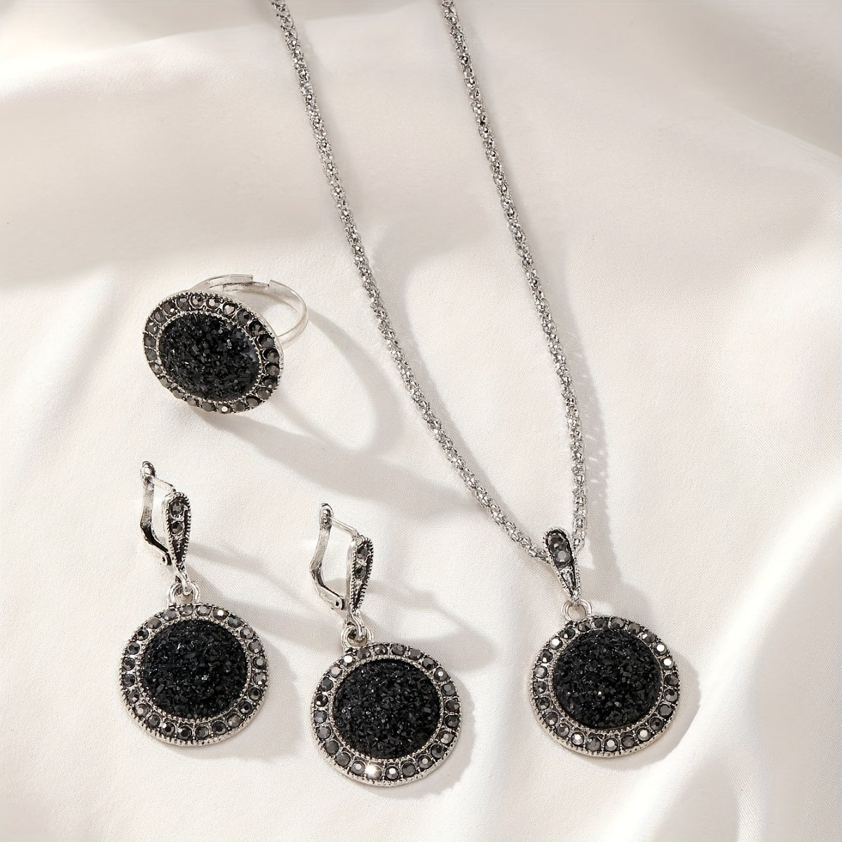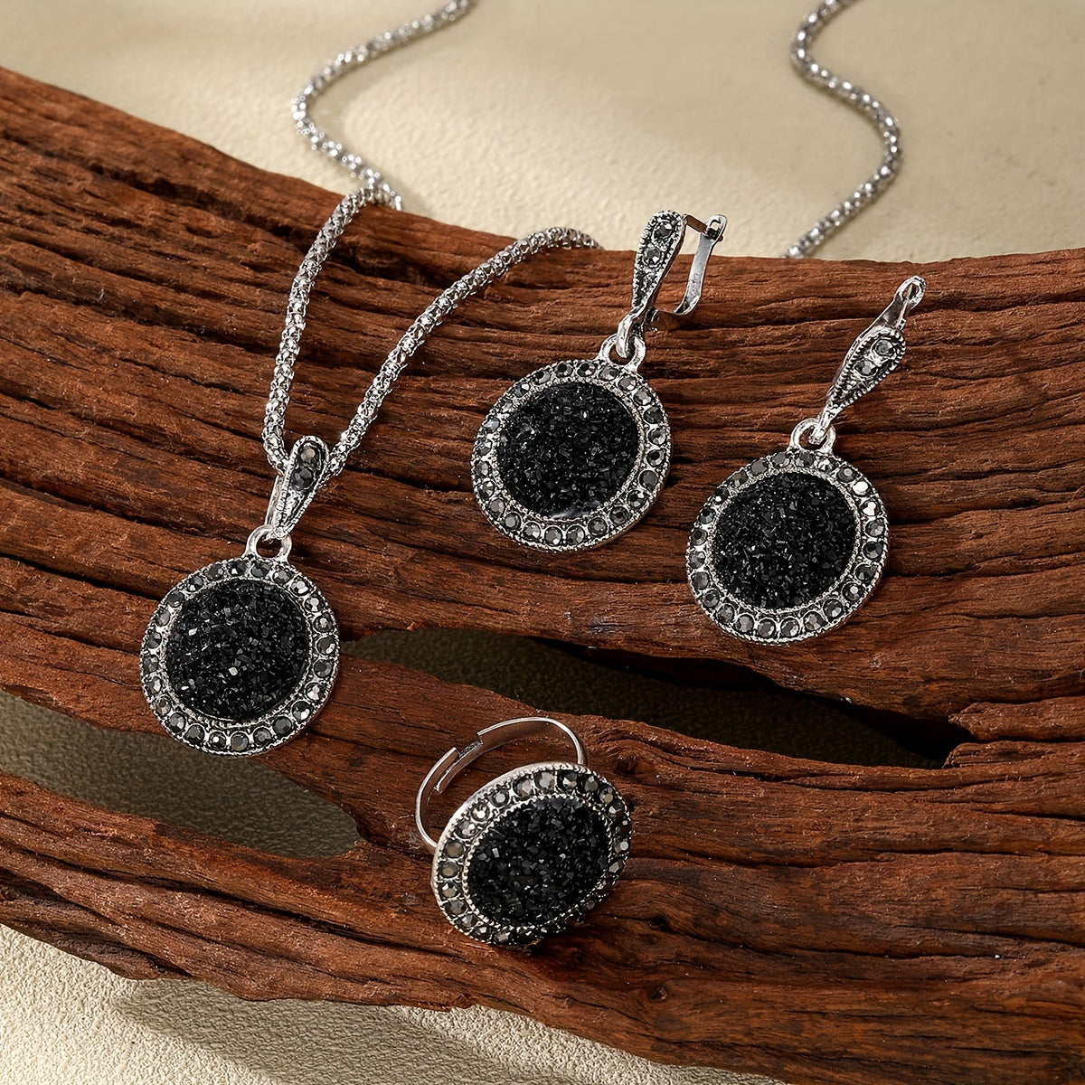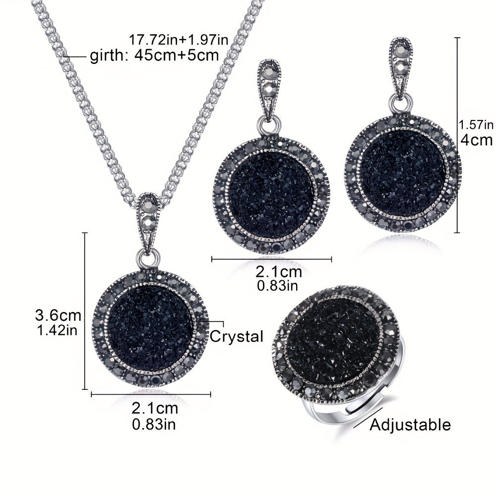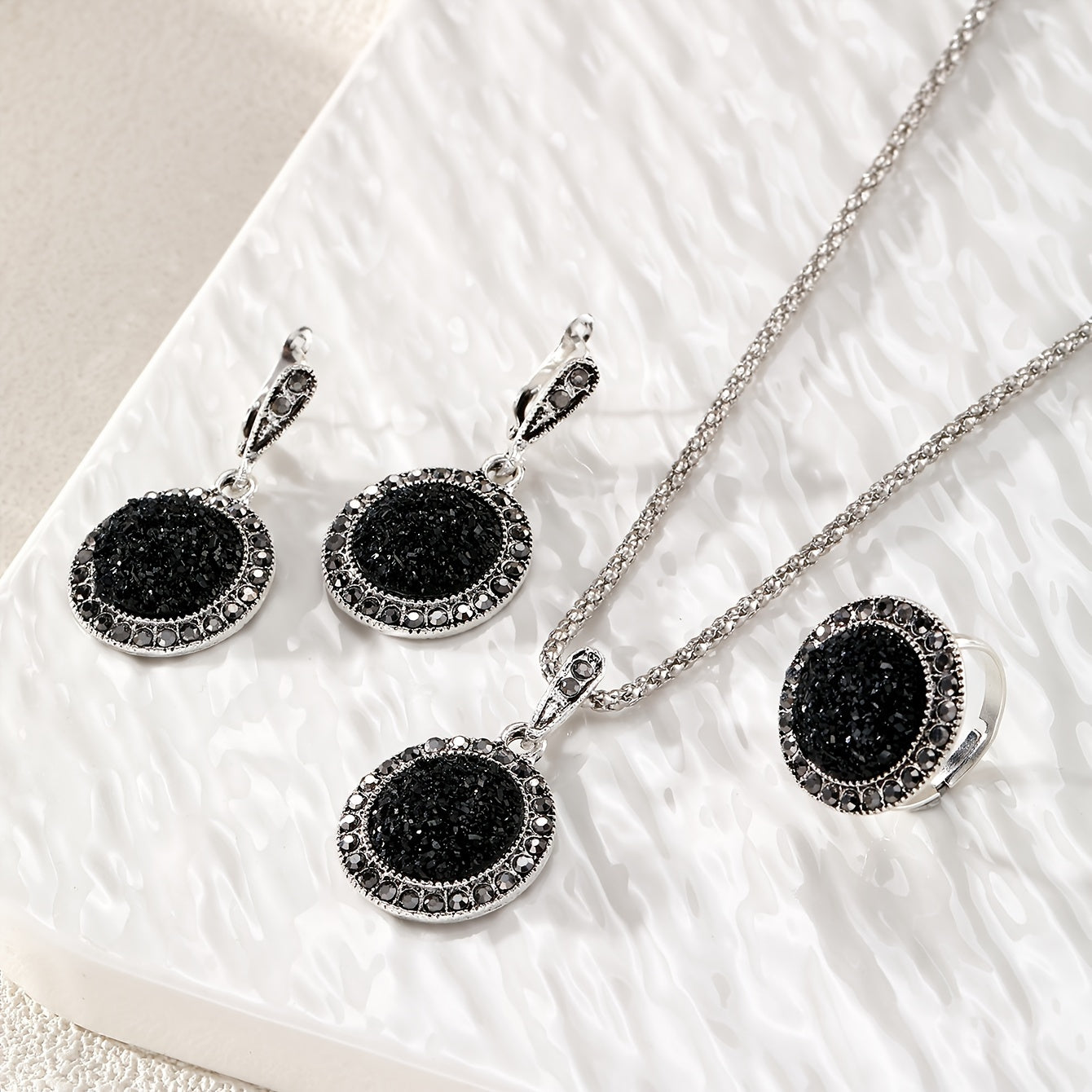 Ayollar partiyalari va tasodifiy kiyimlar uchun boho-chic uslubida vintage qora kristal zargarlik to'plami.