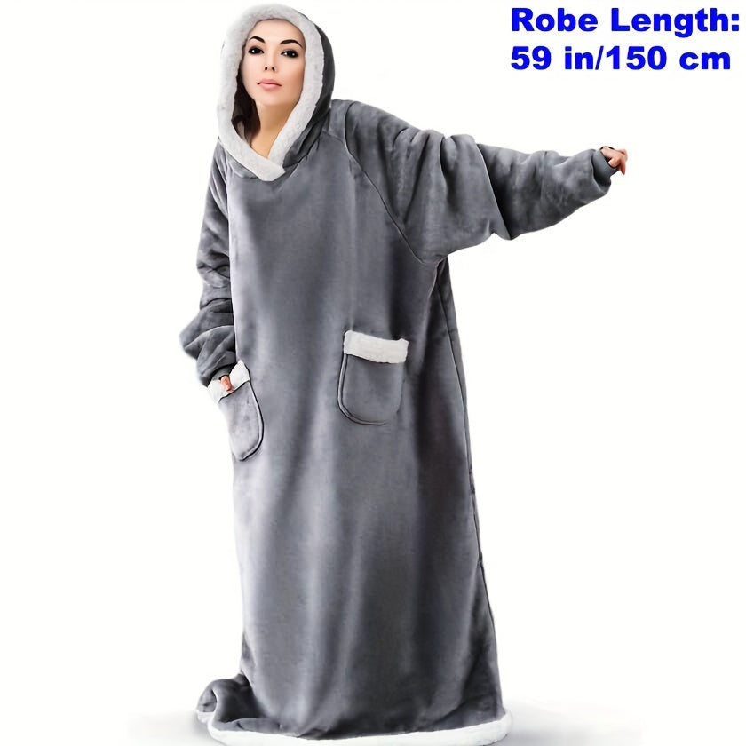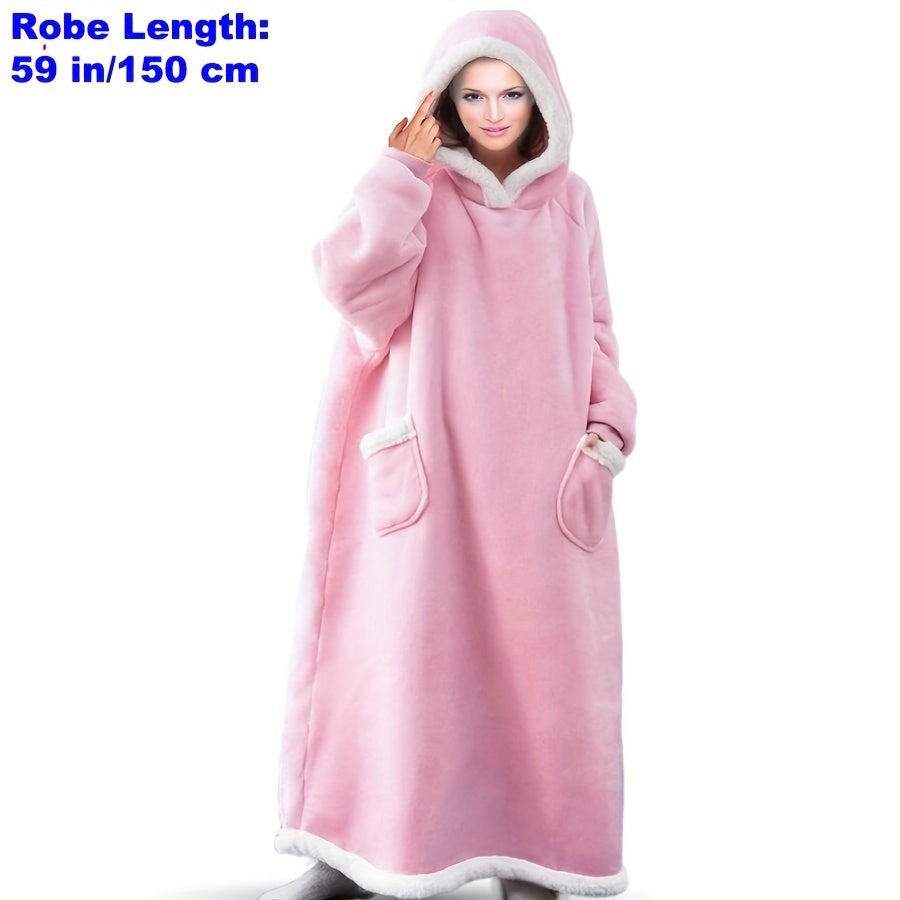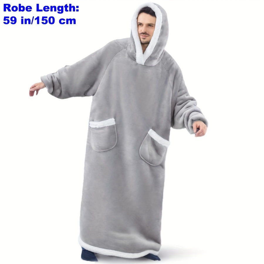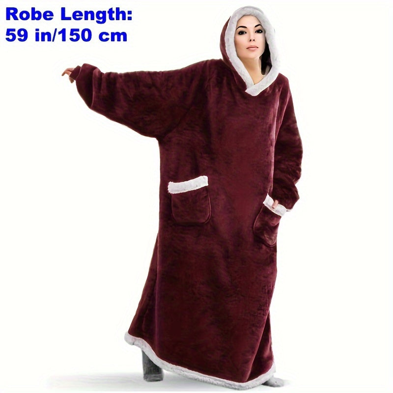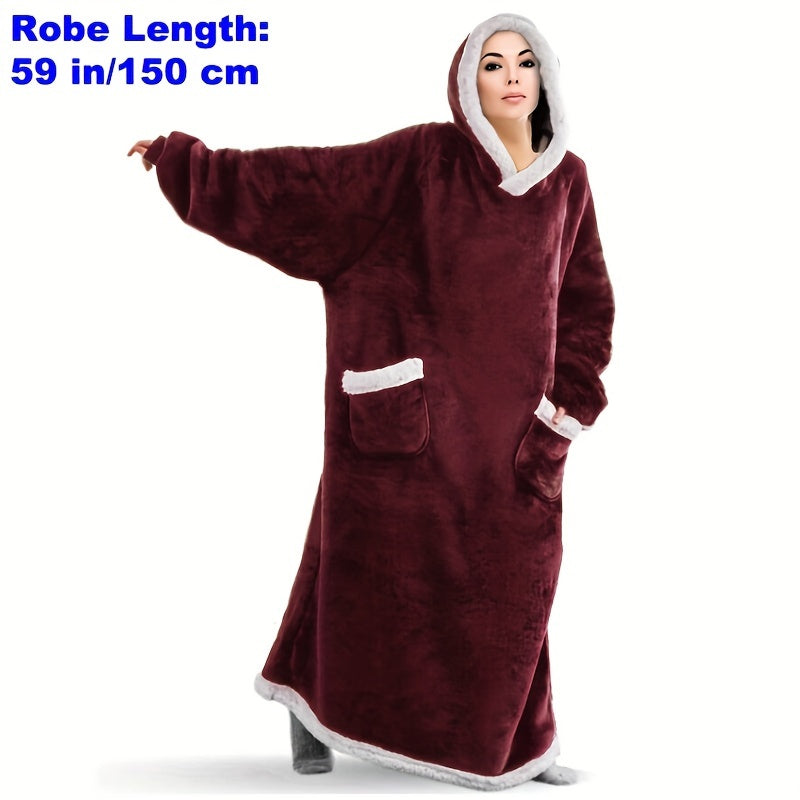 Ko‘k rangli kiyiladigan plash va oq junli chetki qoplama bilan, erkaklar va ayollar uchun uzoq, yumshoq ro‘ba