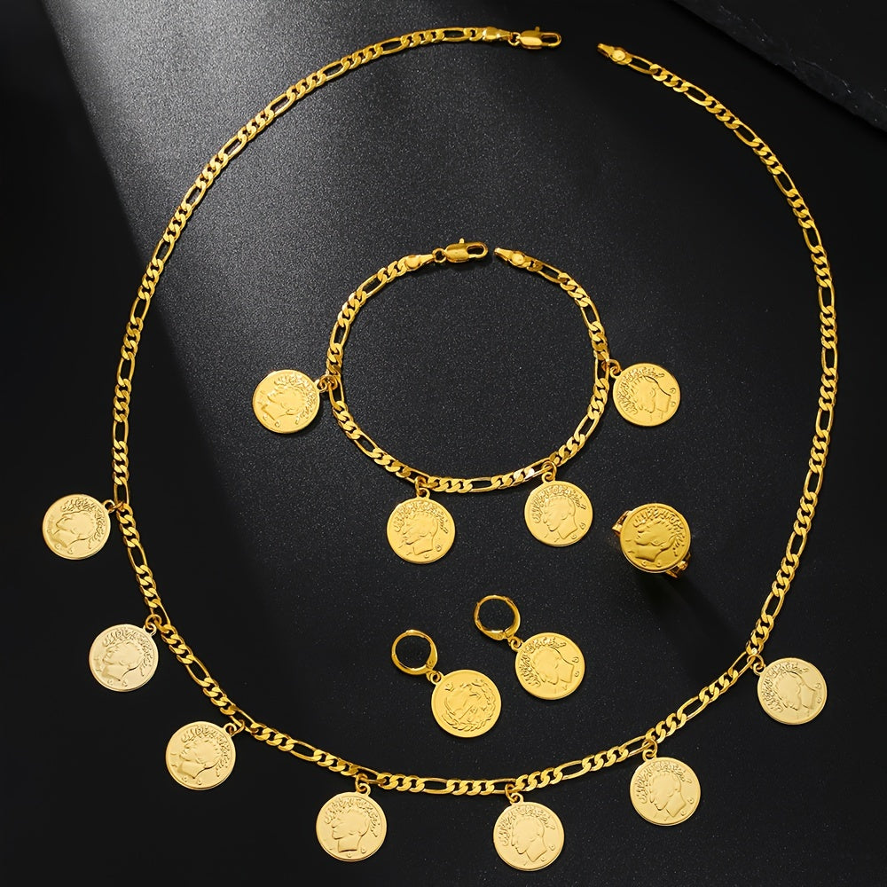 Vintage Boho Ayol Zargarlik To'plami: Zanjir, marjon va bilaguzukni o'z ichiga oladi. 18K oltin qoplama va mis asosida tayyorlangan. Partiyalar va bayramlar uchun mukammal.