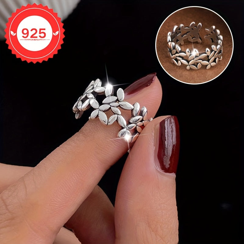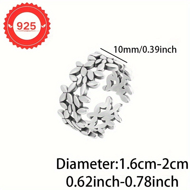 Uniseks Silver Leaf uzuk 925 sozlanadigan bo'sh bohemiy oltin qoplangan yengil