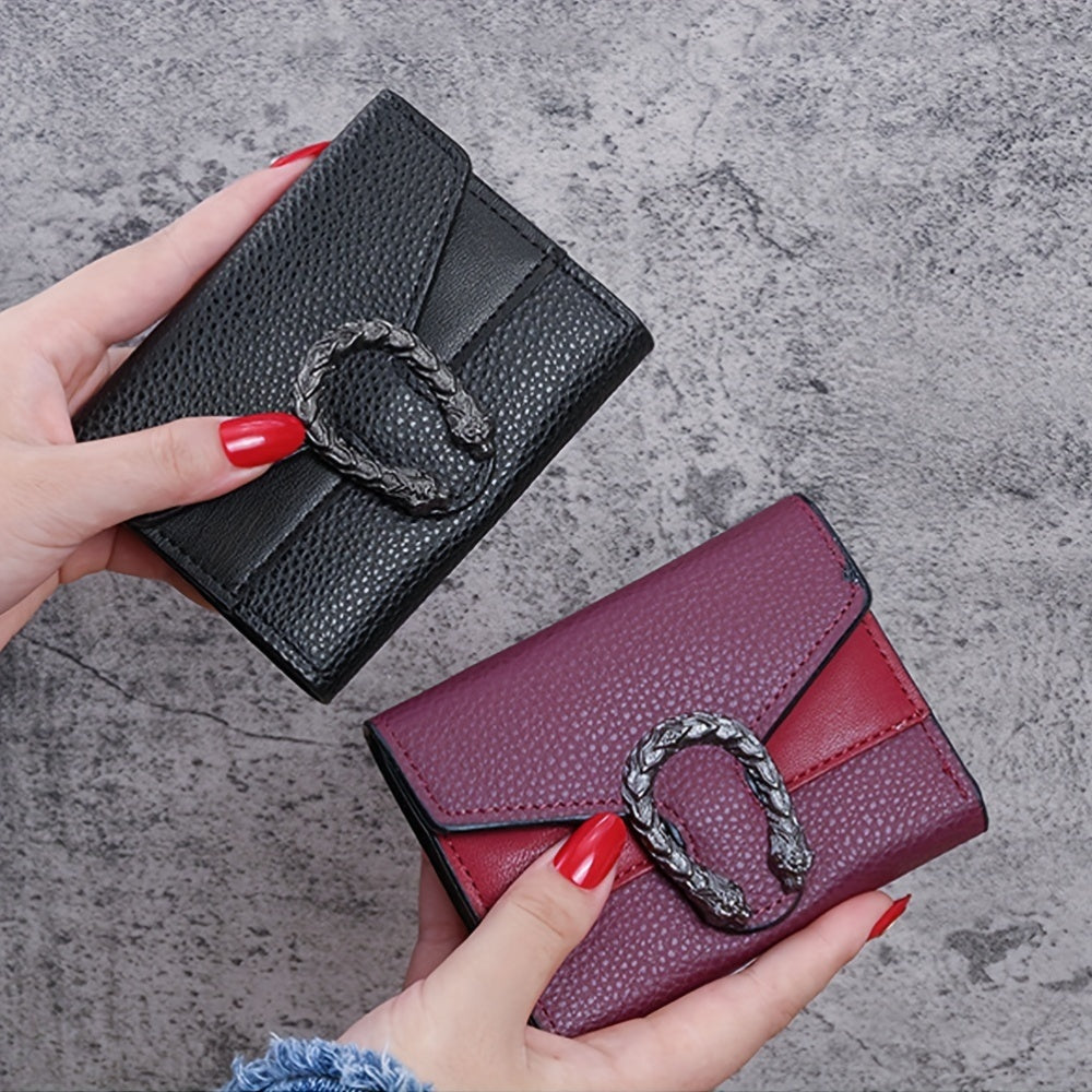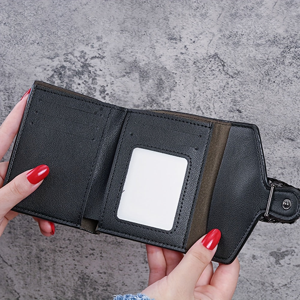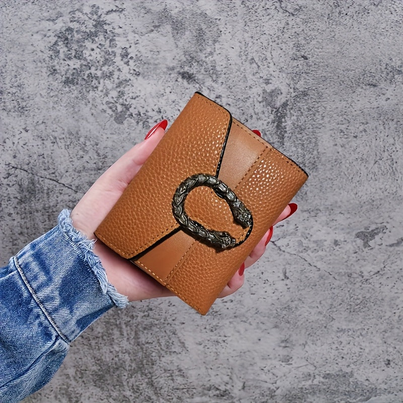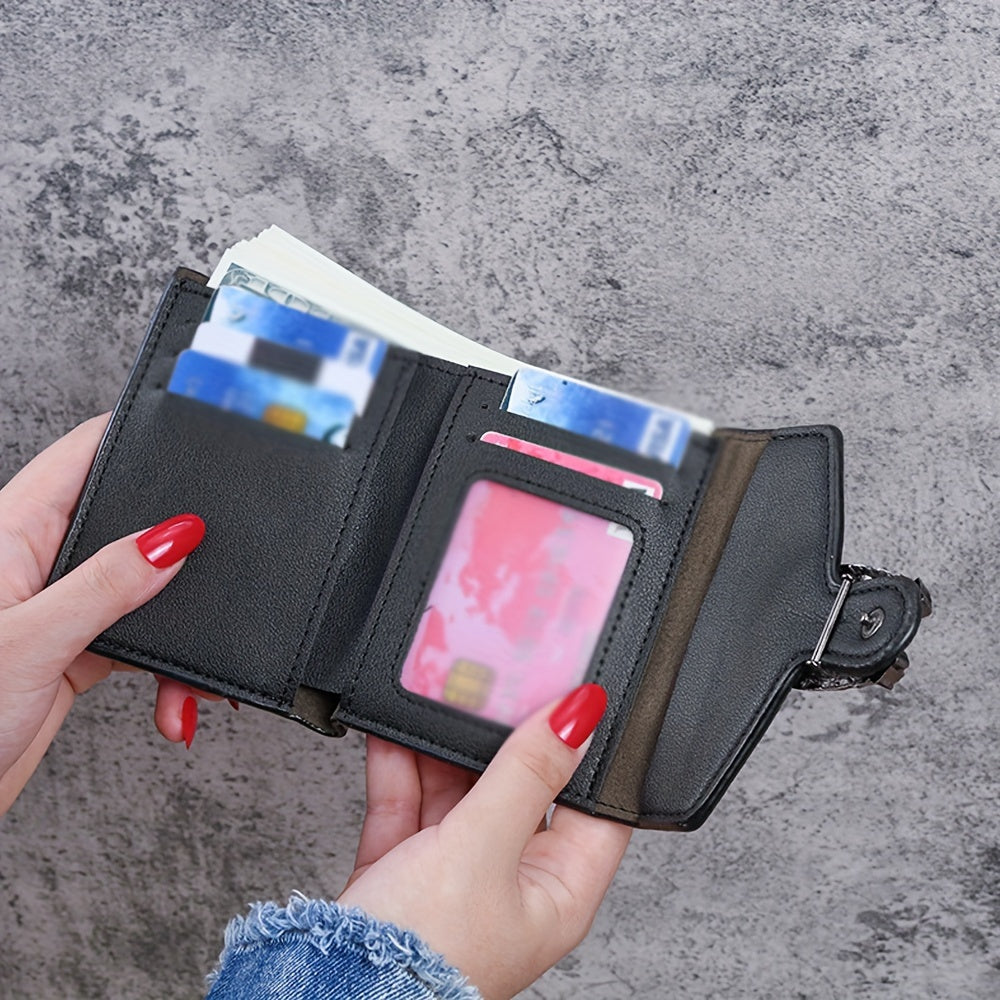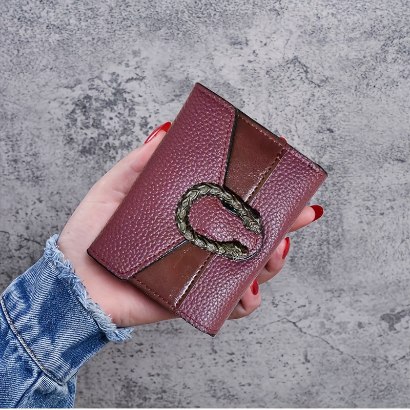Vintage uslubidagi ayollar uchun ingichka hamyon, sun'iy charmdan tayyorlangan, tugmachali yopilish, uch qismli dizayn, cho'zilgan cho'ntak va sun'iy charm astar bilan.