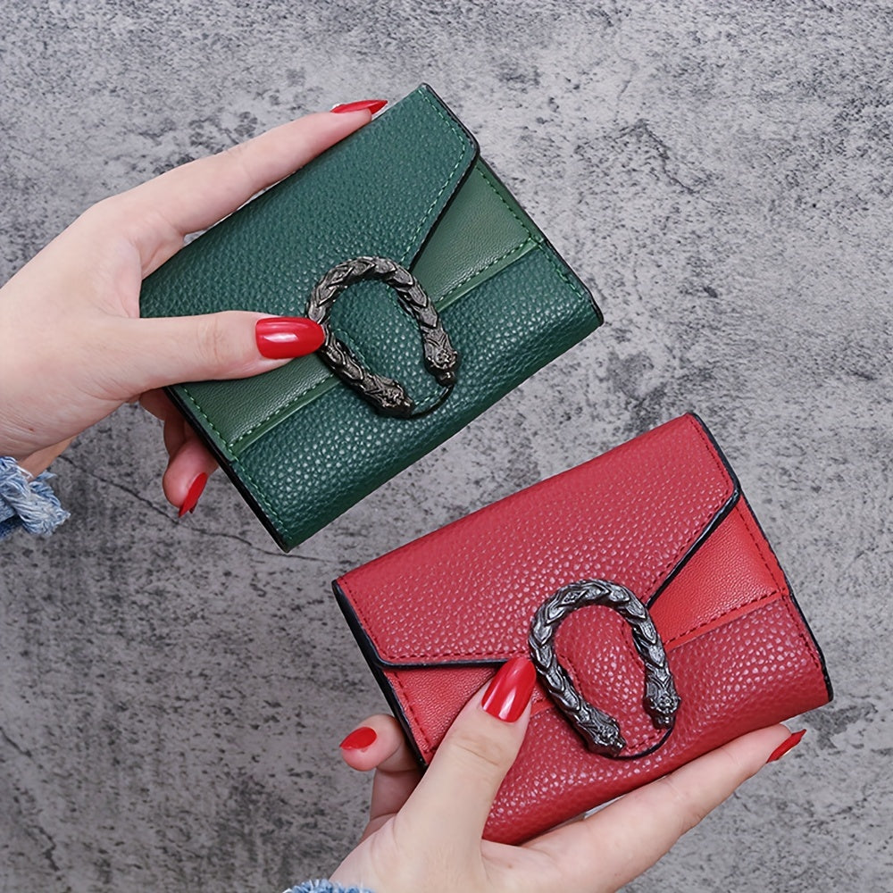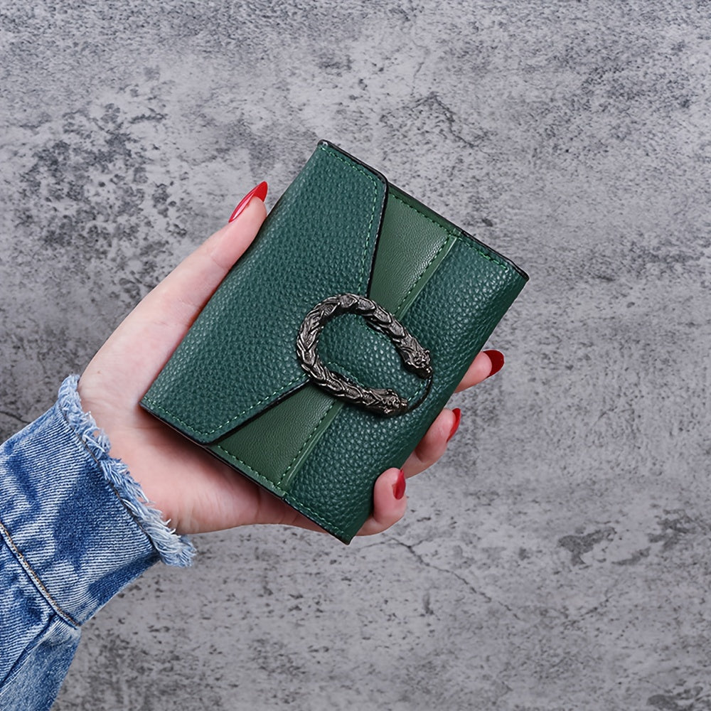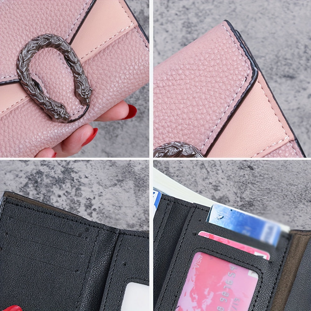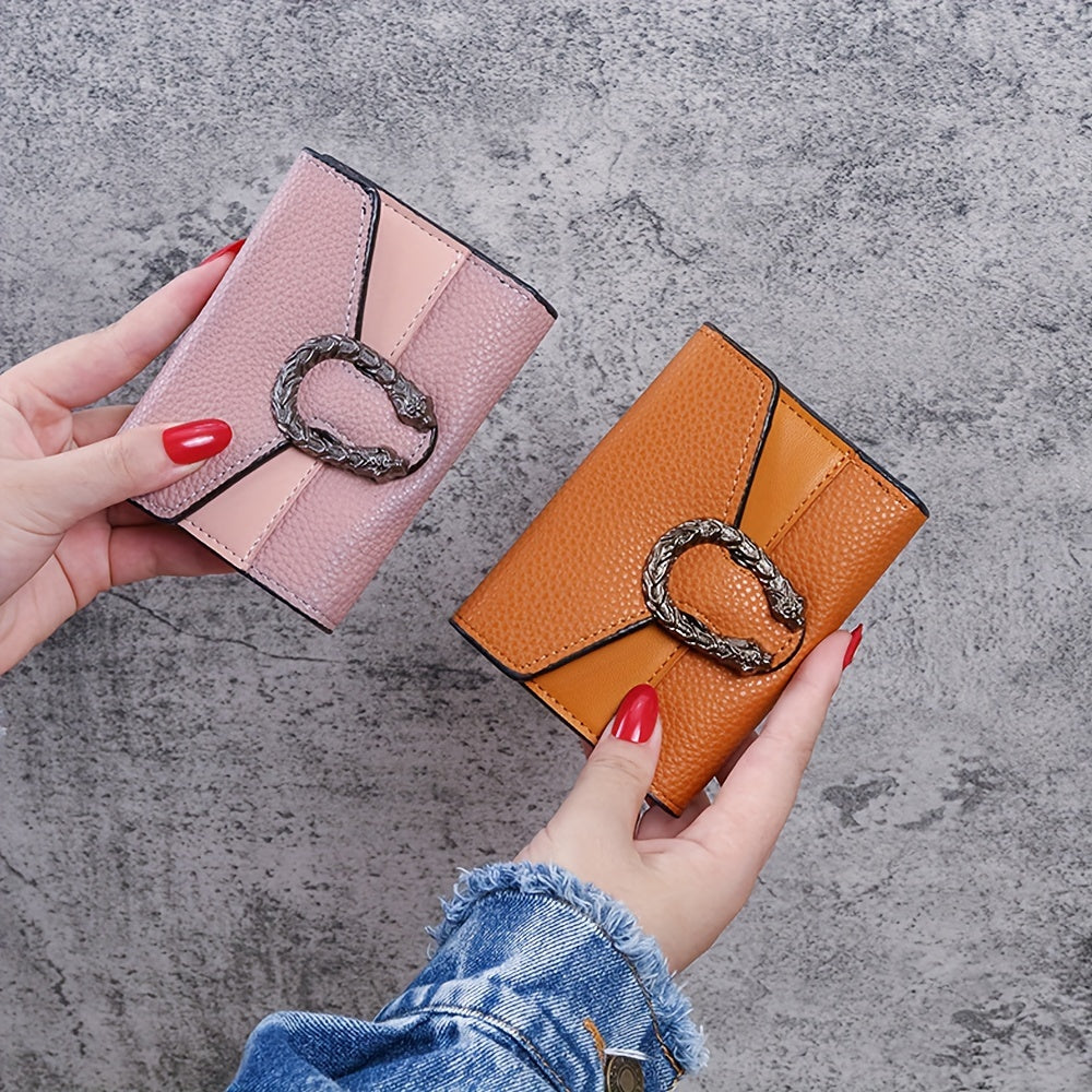 Vintage uslubidagi ayollar uchun ingichka hamyon, sun'iy charmdan tayyorlangan, tugmachali yopilish, uch qismli dizayn, cho'zilgan cho'ntak va sun'iy charm astar bilan.