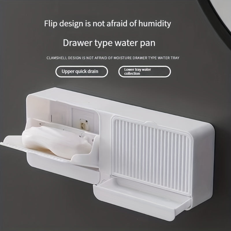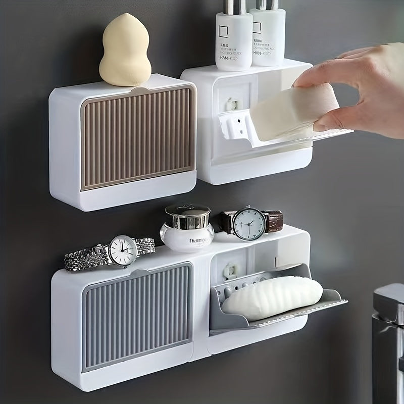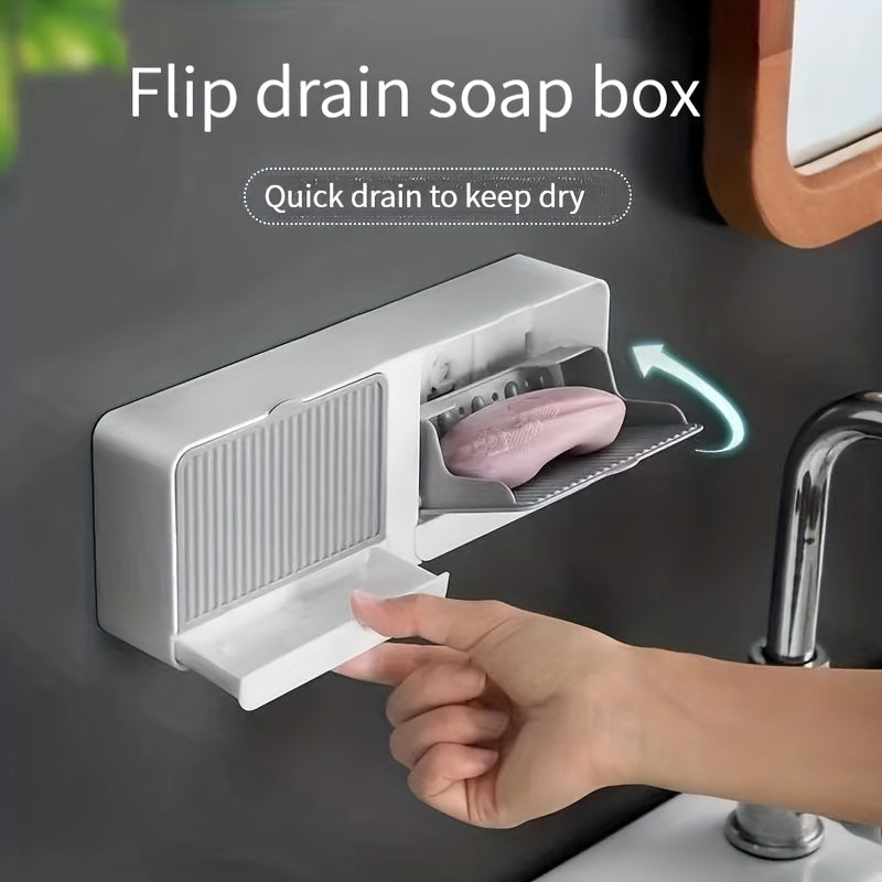 Toʻgʻri burchakli suv o'tkazmaydigan devorga oʻrnatiladigan sovun idishi, qopqogʻi va oqimi bilan, hammom va kir yuvish uchun